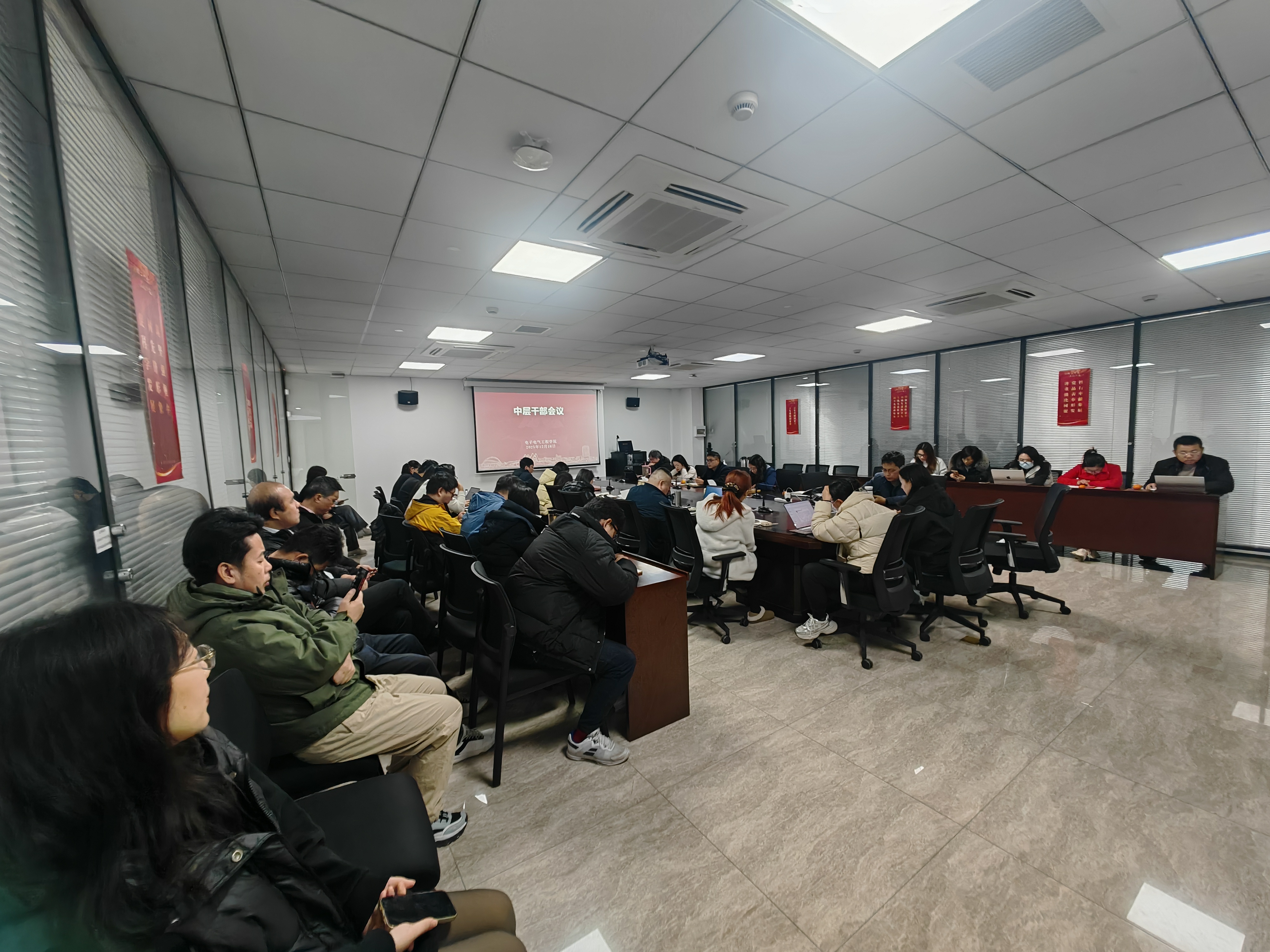12月16日下午,学院在现代交通工程中心7950室召开学院中层干部会议。会议由学院党委书记王成涛主持,学院党委委员、党政领导、中层干部参加会议。