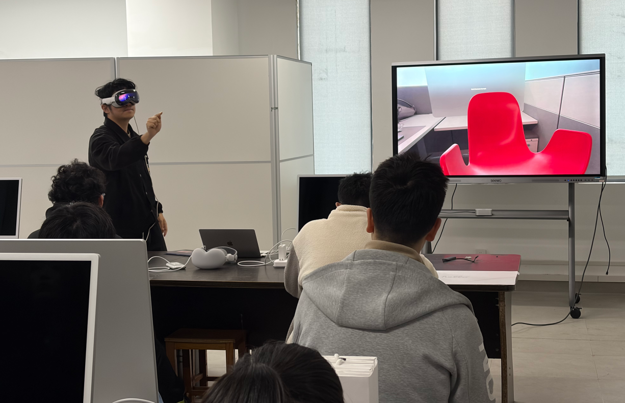 活动中,黄赓老师系统介绍了Swift学习资源、Apple Vision Pro的空间计算交互理念,并带领现场师生进行了沉浸式设备体验。同时,来自上海商学院Swift Coding Club的社长童芷愉及成员张瑜、谢嘉权,也到场分享了社团运营与管理的核心经验,围绕行业趋势与职业发展展开深入交流。
