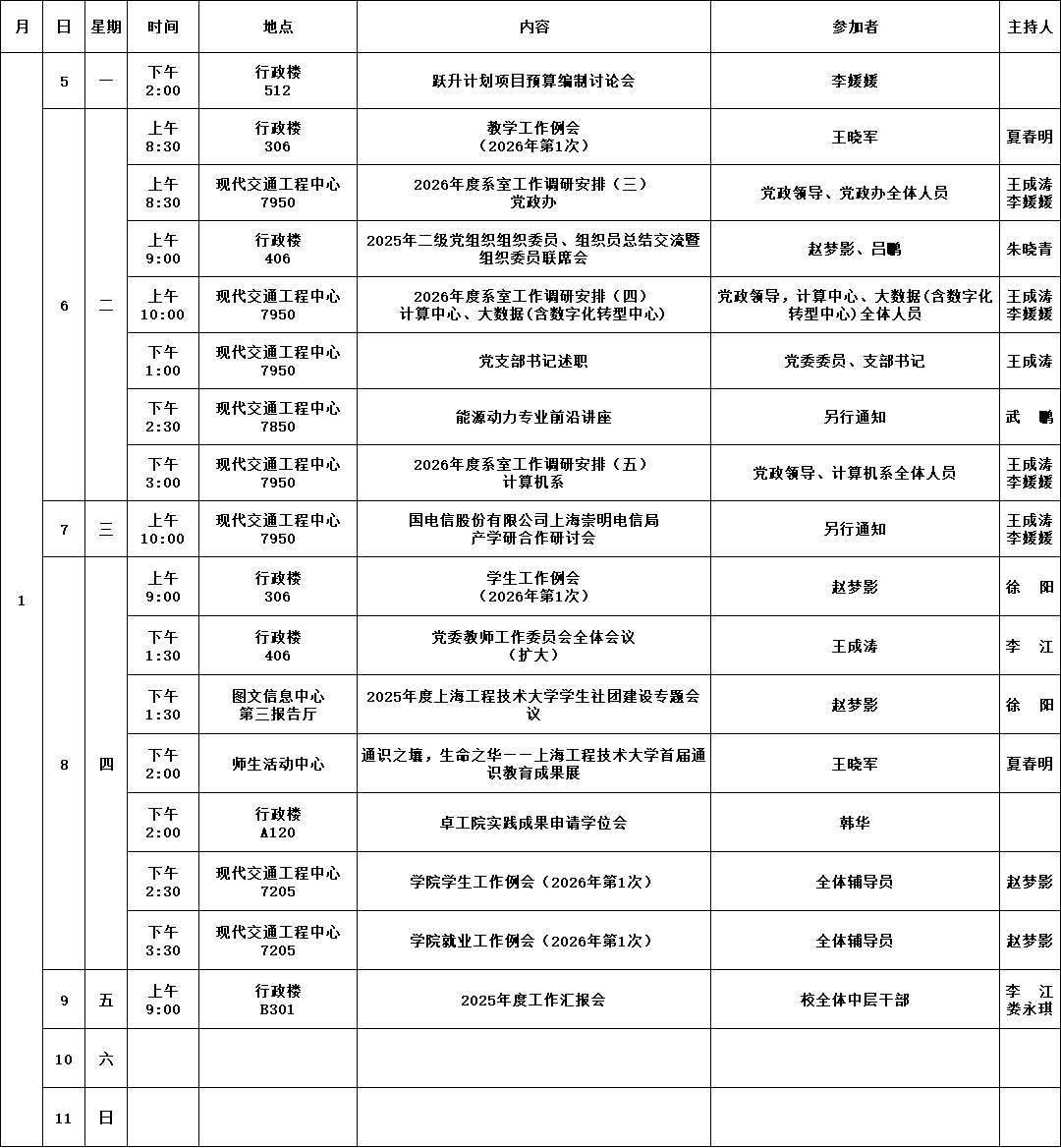 学院第18周活动安排(2025年1月5日至1月11日)