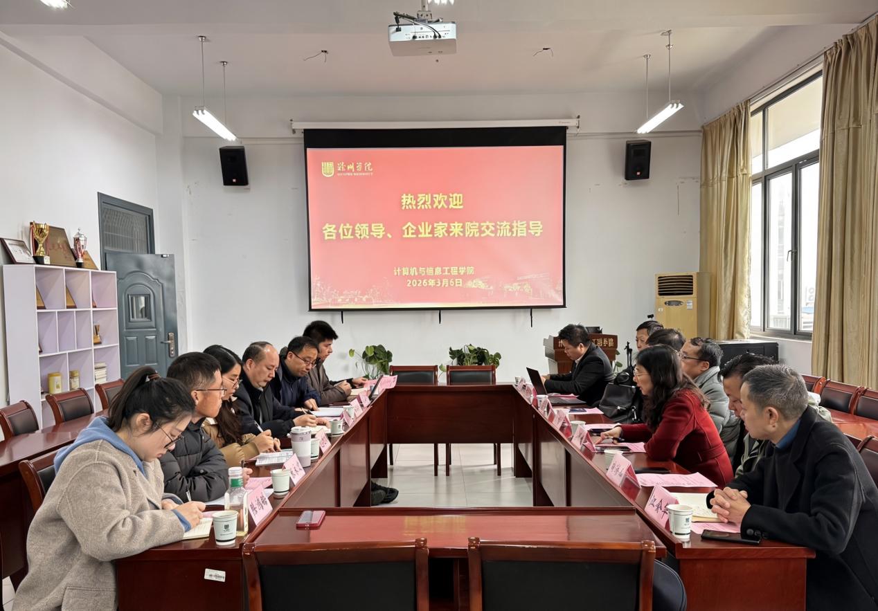 为了更好落实学校“双对高”行动,推进科教融汇、产教融合协同育人,3月6日上午,上海工程技术大学电子电气工程学院院长李媛媛教授、学院特聘教授复旦大学方志军教授,联合滁州市人工智能协会、滁州市相关龙头企业及上海工程技术大学滁州人工智能产业研究院领导一行,专程赴滁州学院计算机与信息工程学院开展深度交流研讨,旨在以校地校企资源联动,破解人才培养与产业需求衔接难题,助力区域产业高质量发展。