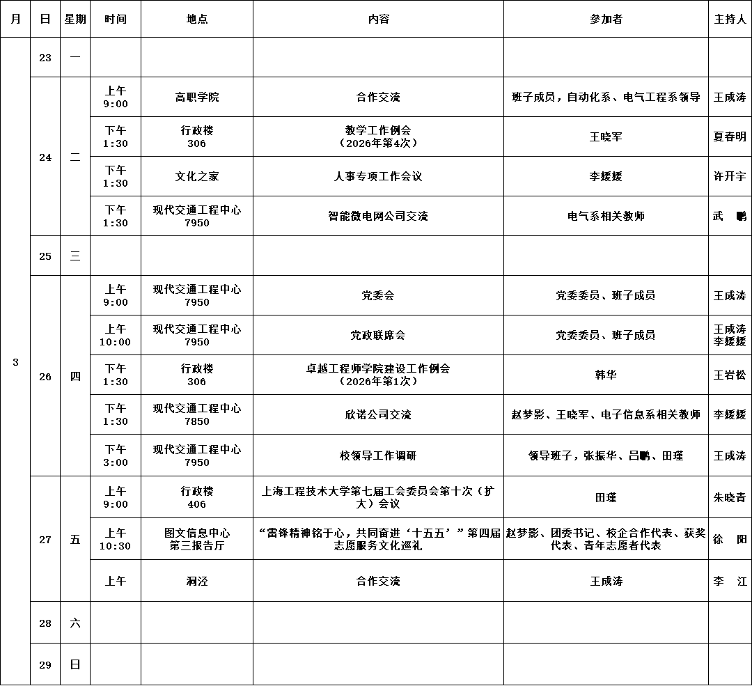 学院第3周活动安排(2026年3月23日-3月29日)