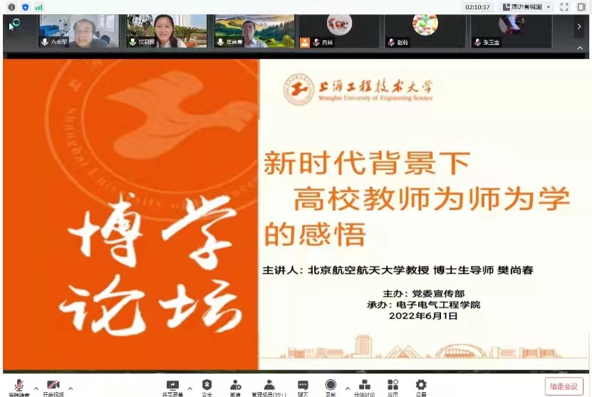 为推进“师德师风建设深化年”的工作要求,进一步加强党对学校教师工作的领导,夯实教师思想政治和师德师风建设工作基础,落实师德师风第一标准,6月1日下午,学院教师发展分中心在线上开展师德师风教育,特邀北京市教学名师、北京航空航天大学教授樊尚春做客我校博学论坛,给全体教职工作题为《新时代背景下高校教师为师为学的感悟》专题报告。学院全体教师和部分其他学院教师参加了会议。会议由学院党委书记范君晖主持。