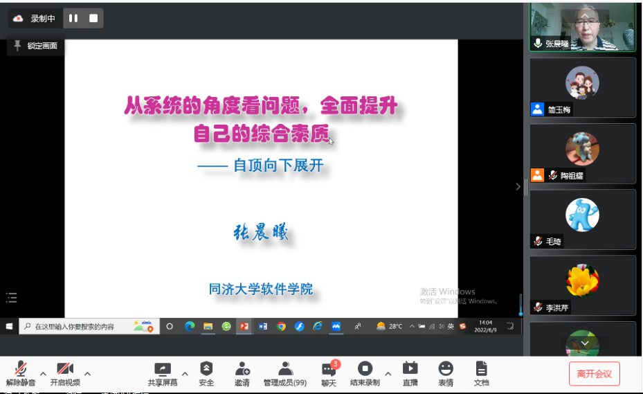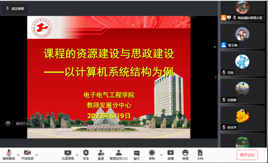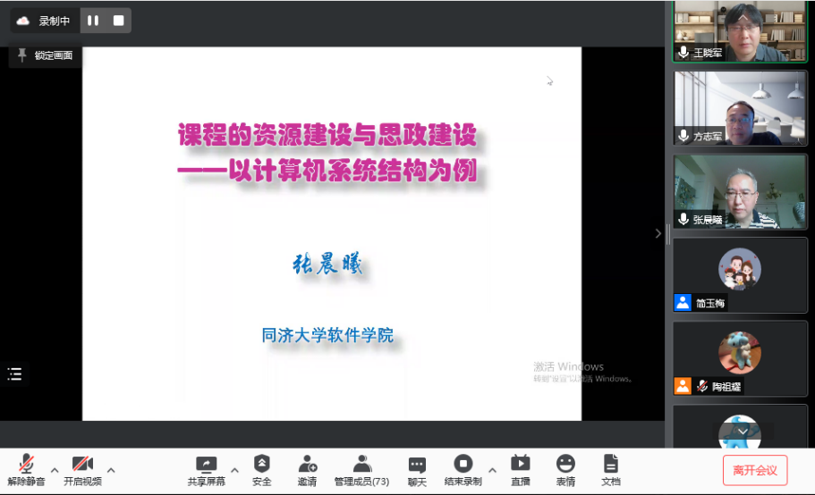 会议中,张老师以计算机系统结构课程为例,对如何建设一门一流课程进行了详细的介绍,包括:PPT制作、课程内容设计、教学方法实施、课程视频制作以及课程网站建设等内容。