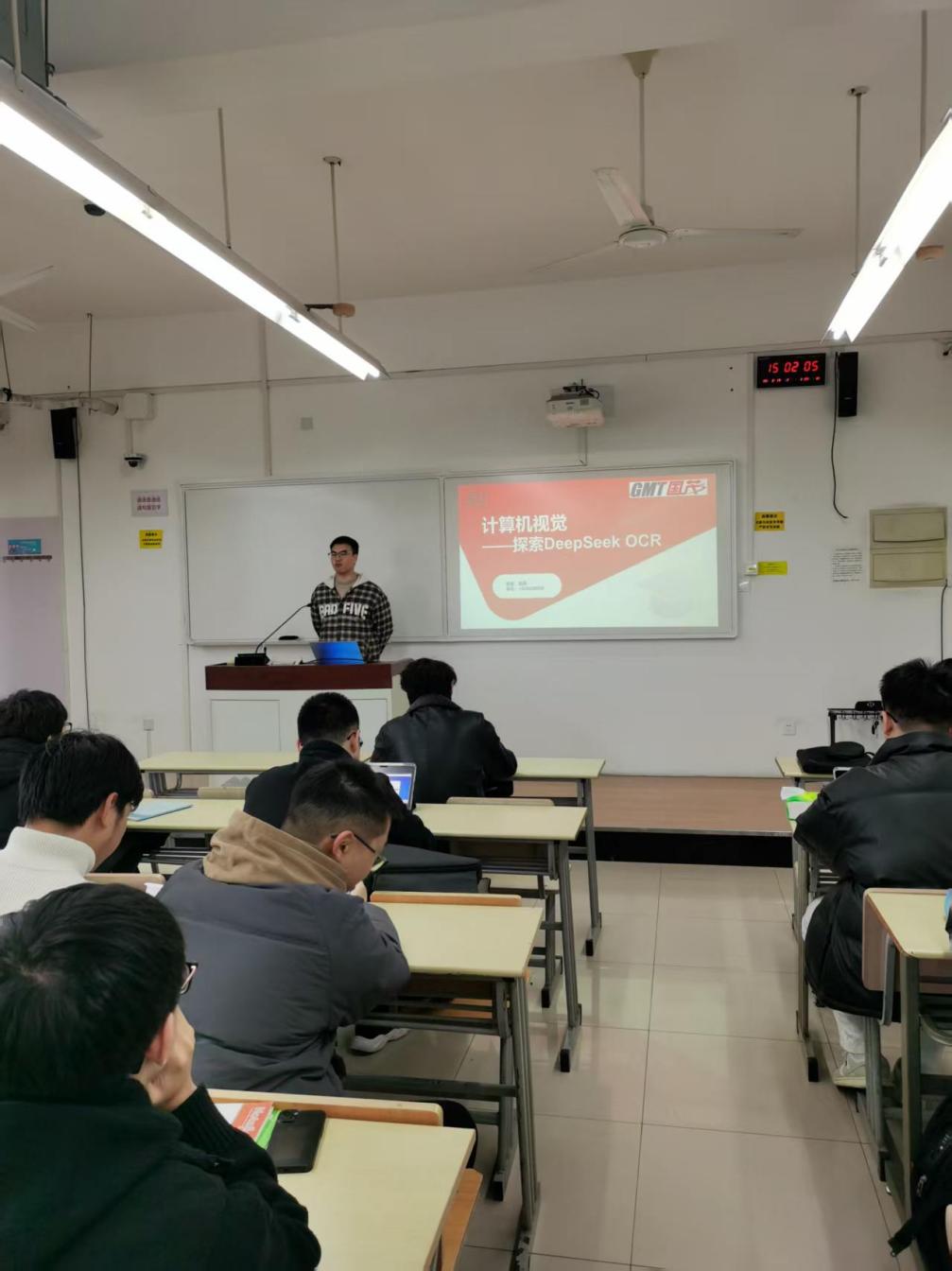 赵旭工程师聚焦技术实际落地场景,结合金融单据处理、病历数字化、文档智能识别等行业典型案例,详细讲解了DeepSeek OCR技术在产业领域的具体应用,让同学们直观认识到计算机视觉技术的实用价值。同时,他分享了自身在项目研发过程中的实战经验,鼓励同学们扎实筑牢专业基础,注重理论与实践的有机结合,着力培养创新思维与解决实际问题的能力。