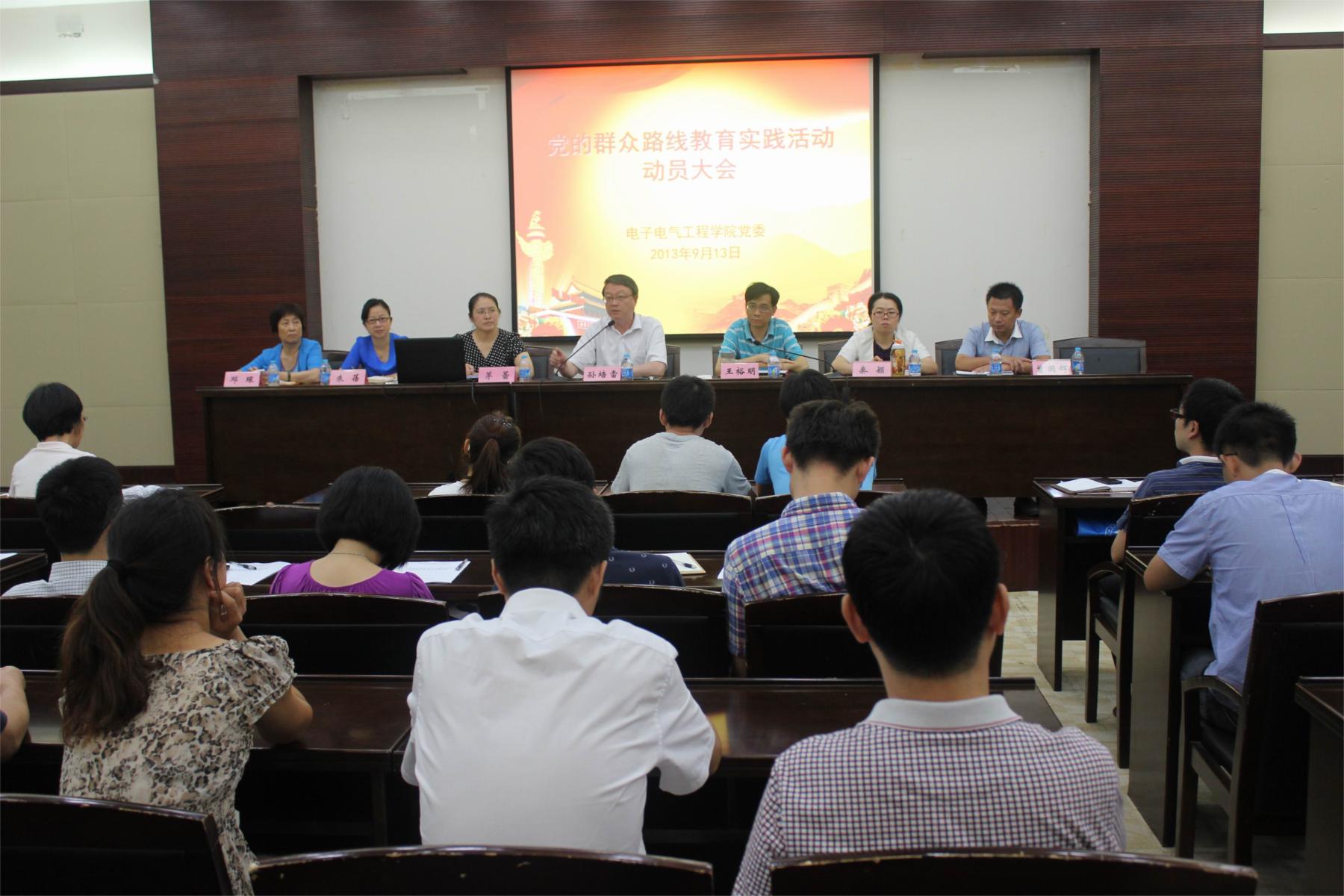 根据学校党委统一部署,9月13日下午,电子电气工程学院在图书馆第三报告厅召开学院群众路线教育实践活动动员大会,学院全体党员教师、学生党员代表和校第三督导组参加了会议,副校长孙培雷出席会议,学院党委书记茅蕾在会上作动员报告,学校第三督导组组长朱蓓作讲话,院长王裕明主持会议。