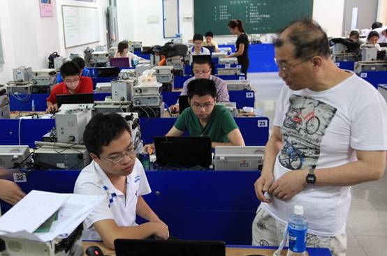 9月5日下午,电子电气工程学院院长王裕明,党委书记茅蕾,院长助理高飞,院办主任吴丽萍等一行来到各竞赛地点,亲切看望了参加比赛的同学。学院领导了解了学生参加比赛的情况,对学生不眠不休彻夜奋斗的情况尤为关注,关照老师们要关心学生身体状况,想尽办法为他们补充营养,保证他们有充足的体力和饱满的精神参加竞赛。