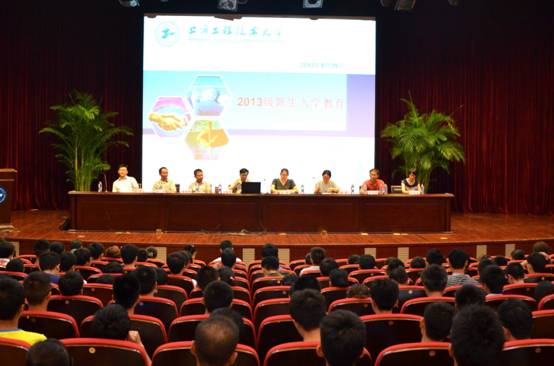 王院长代表学院对所有新生表示了热烈欢迎,他向大家介绍了学院发展历史、专业构成、教学科研、实验室建设、学术交流、交换访学、产学合作等概况。王院长援引英国著名教育学家怀海特的话:“中学阶段,学生伏案学习,而在大学里,他应该站起来,四面瞭望。”,希望全体新生能尽早树立人生目标,学会独立生活,大学生要以新的眼光、新的思维、新的目标,用更快、更高、更强的态度把大学作为人生成才、成就事业的新起点,用确立的目标不断激励自己;转变学习方式以自学为主;制定合理的学习规划度过美好的大学生活。