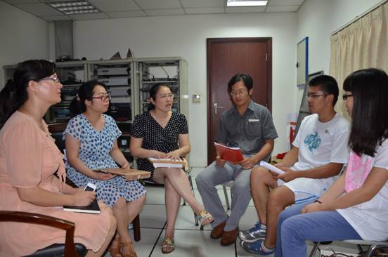 8月29日下午,电子电气工程学院在图文信息中心开展与两名新生预备党员谈心活动,院党委书记茅蕾,副书记秦颖、组织员周科亮、辅导员刘铁英一起参加。