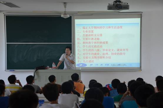 8月29日下午,电子电气工程学院计算机系主任孙宪坤、副主任苏前敏、自动化系主任李媛媛、电气工程及自动化系主任陈宇晨、电子信息工程系主任孔勇,于教学楼各新生班级对2013级全体新生开展了新生专业教育。