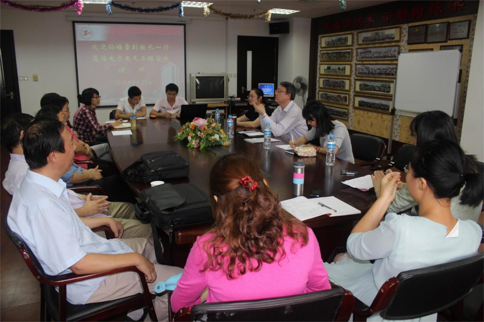 9月25日上午,孙培雷副校长到电子电气工程学院开展群众路线教育实践活动调研,调研会议在行政楼912召开,部分学院党员教师和党员学生代表参加了会议,大家针对学院领导班子和领导干部在四风方面的问题提出了自己的意见和建议。