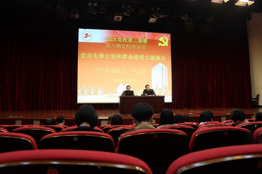 |  4月2日下午,学生处副处长严运楼副教授在图文信息中心志宏堂为园区党校学员作题报告,材料工程学院组织员阮晓栋老师主持报告。 严老师深入浅出的讲解了党员如何做好五个先锋:一是学习先锋。他指出党员要养成良好的学习习惯,认真学习马克思主义理论和党的理论,带动周围学生党员群众一起学习,共同进步,树立正面形象。二是实践先锋。严老师认为党员要积极参加学校组织的各种实践活动,通过实践活动培养自己发现问题解决问题的能力和自己在学生群众中的口碑。三是生活先锋。严老师指出党员要勤俭节约,生活简朴,带头搞好宿舍卫生文明建设并积极参加相关活动,如光盘行动、美化校园等。四是互助先锋。严老师认为党员要在学习生活方面帮助同学,多和同学沟通,帮助心理方面有需要的同学,用自己的行动带动周围形成良好氛围。五是服务先锋。严老师指出党员要先服务身边的小社会——宿舍,营造和谐宿舍,其次服务班级,带头参与建造和谐校园,最后是服务社区,大家一起共同构建美好家园。 学生处副处长严运楼老师的报告细致深入,为学生党员如何发挥先锋模范作用提出了可操作性的规范,大家边听边记,同时根据严老师讲的内容进行对照,发现自己身上存在的不足,纷纷下定决心要按照严老师提出的先锋模范内容认真努力,充分发挥党员先进性和模范性。 |