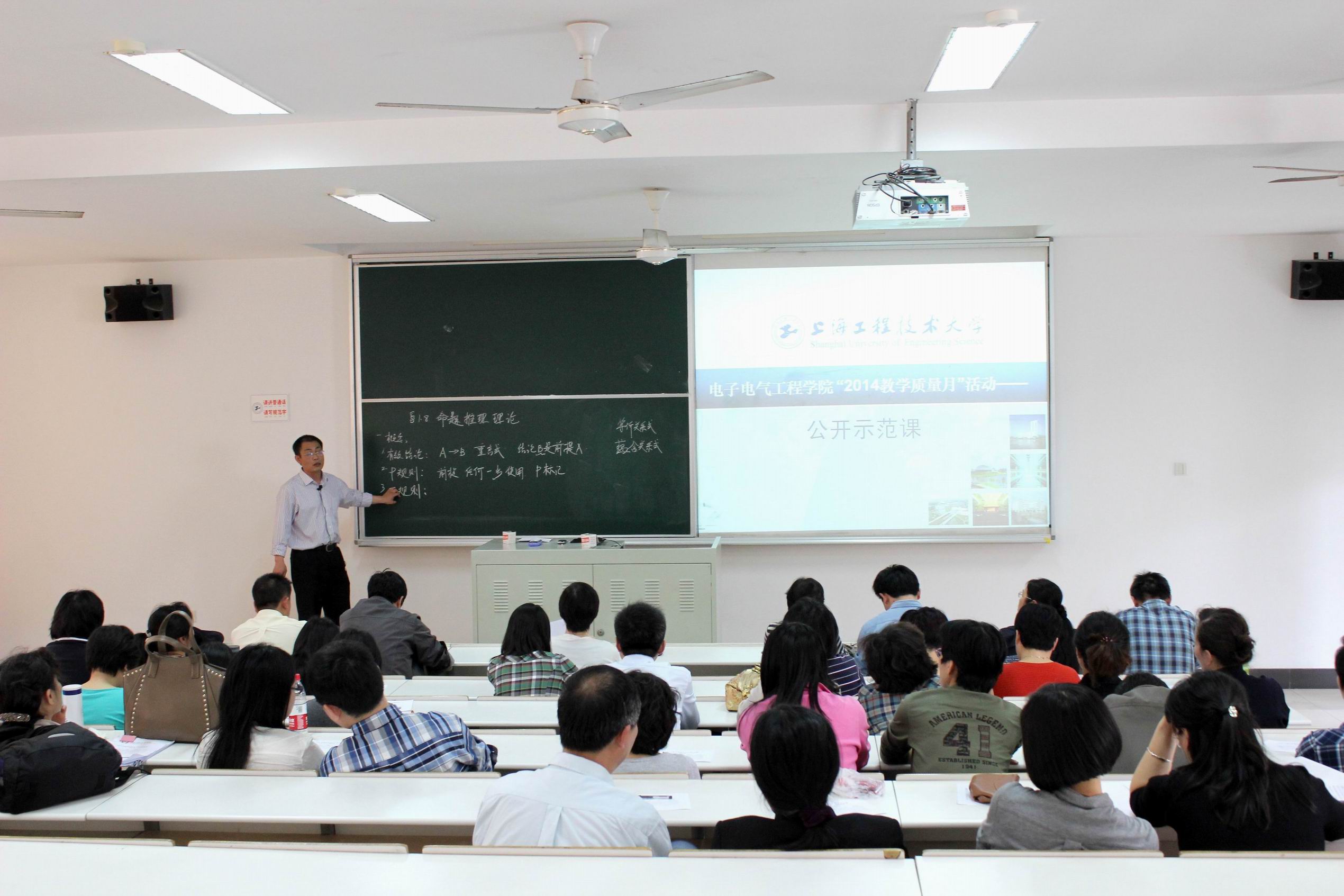 在2014年“教学质量月”活动之际,5月16日下午,电子电气工程学院在教学楼F306举行了“公开示范课”活动。孙宪坤、张颖、李洪芹、张菁等四位具有高级专业技术职务的教师进行了公开授课。学院张莉萍副院长主持本次活动,参加活动的全体教师进行了评议并打分。