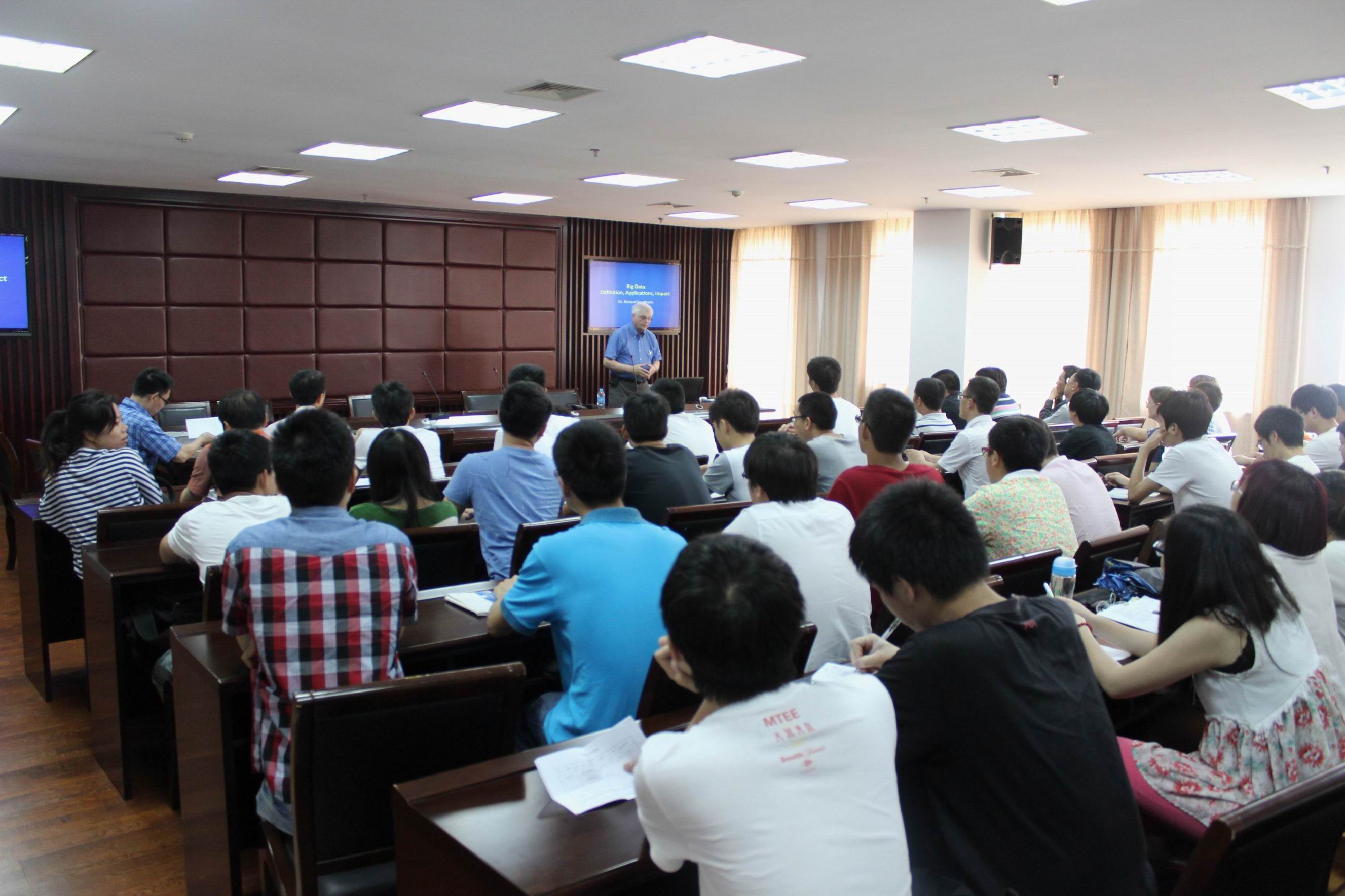 报告在行政楼506进行,Dr. Richard Sundheim对大数据相关主题内容进行了精彩的讲解。通过Dr. Richard Sundheim的讲解,参会的教师和学生对大数据有了更多更新的认识。在报告中,大家了解到大数据处理需要特殊的技术,包括大规模并行处理(MPP)数据库、数据挖掘电网、分布式文件系统、分布式数据库、云计算平台、互联网和可扩展的存储系统等。