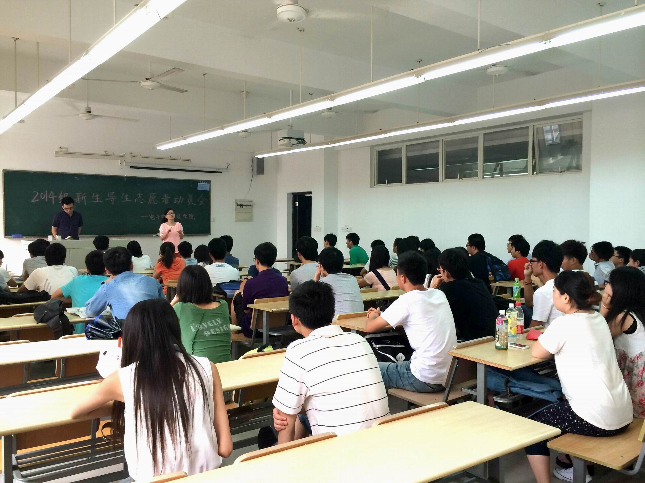 为帮助2014级新生尽快适应全“学分制”下的学习生活,电子电气工程学院将在2014级新生中推行“导生制”。6月13日下午,“导生”选拔动员会在教学楼B110教室顺利举行。学院2014级新生辅导员老师杨健豪、张雅丹在会上阐述了公开选拔“导生”的重要意义,现场解读了“导生制”的概念、《电子电气工程学院“导生”管理办法》、选拔流程、2014级新生“导生”开学工作职责及要求。与会同学深刻理解了此次“导生”选拔的意义,43名同学进行了现场报名,表示将精心筹划和准备选拔面试,积极展现学院同学的责任心和无私奉献的精神。