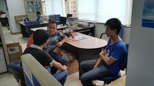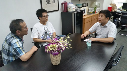 在中美合资企业上海赐宝停车设备制造有限公司走访时,学院领导受到了该公司朱经理的热情欢迎。他向我们详细介绍了上海赐宝停车设备制造有限公司的运作模式,表示非常赞赏同学能够利用暑假时间来锻炼实践能力。高老师与朱经理饶有兴致的探讨了电机控制的专业问题,并希望学校和企业之间的产学研方面能够有进一步合作。