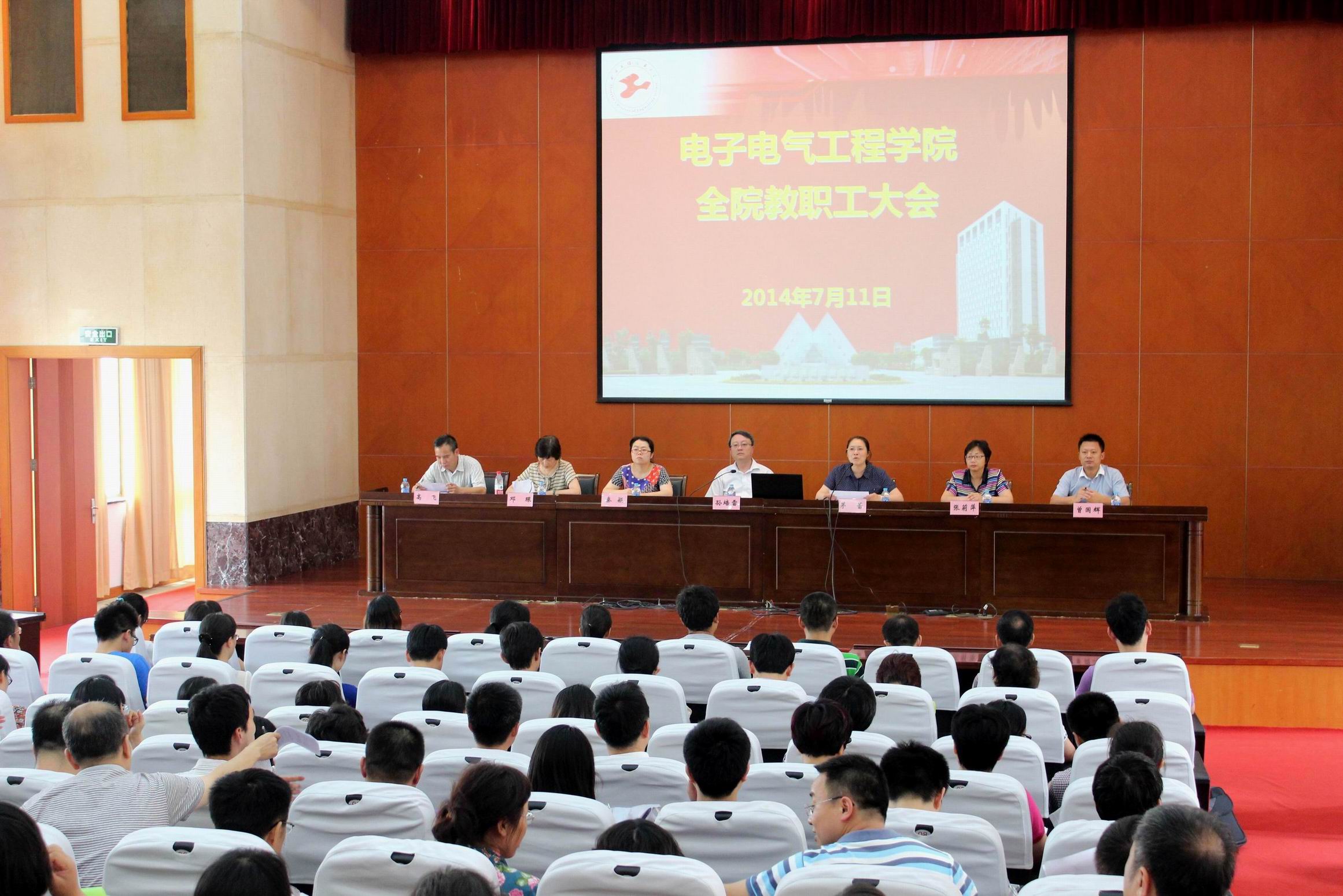 7月11日下午,电子电气工程学院在行政楼B301召开全体教职员工大会,详细布置暑期具体工作。副校长孙培雷出席会议并传达学校相关工作精神,学院领导班子在会上分别就各自负责的工作进行了安排。