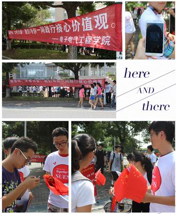 来自电子电气工程学院学生会各个部门的同学们作为志愿者,尽心尽力的布置场地,分发小国旗和印有社会主义核心价值观主要内容的传单并高举宣传板,号召路过的同学通过扫描二维码关注“风尚电气”并在条幅上签上“富强,民主,文明,和谐,自由,平等,公正,法治,爱国,敬业,诚信,友善”等方式来响应这次活动。希望通过这次活动,同学们可以加深对社会主义核心内容的感悟,并以身作则,在国庆这个特别的期间里,以自己为圆心,无限传播正能量,让我们的社会可以更加美好。