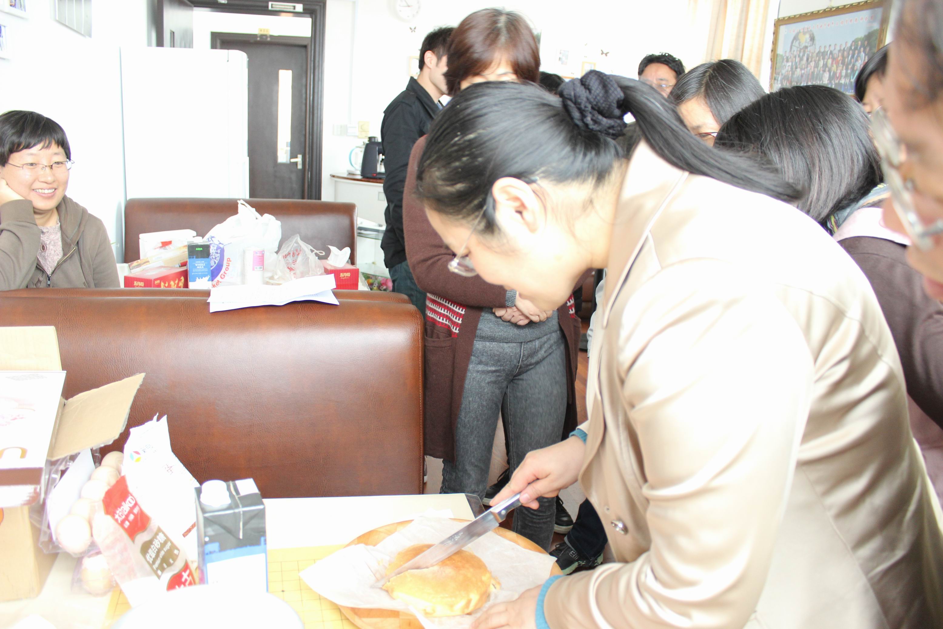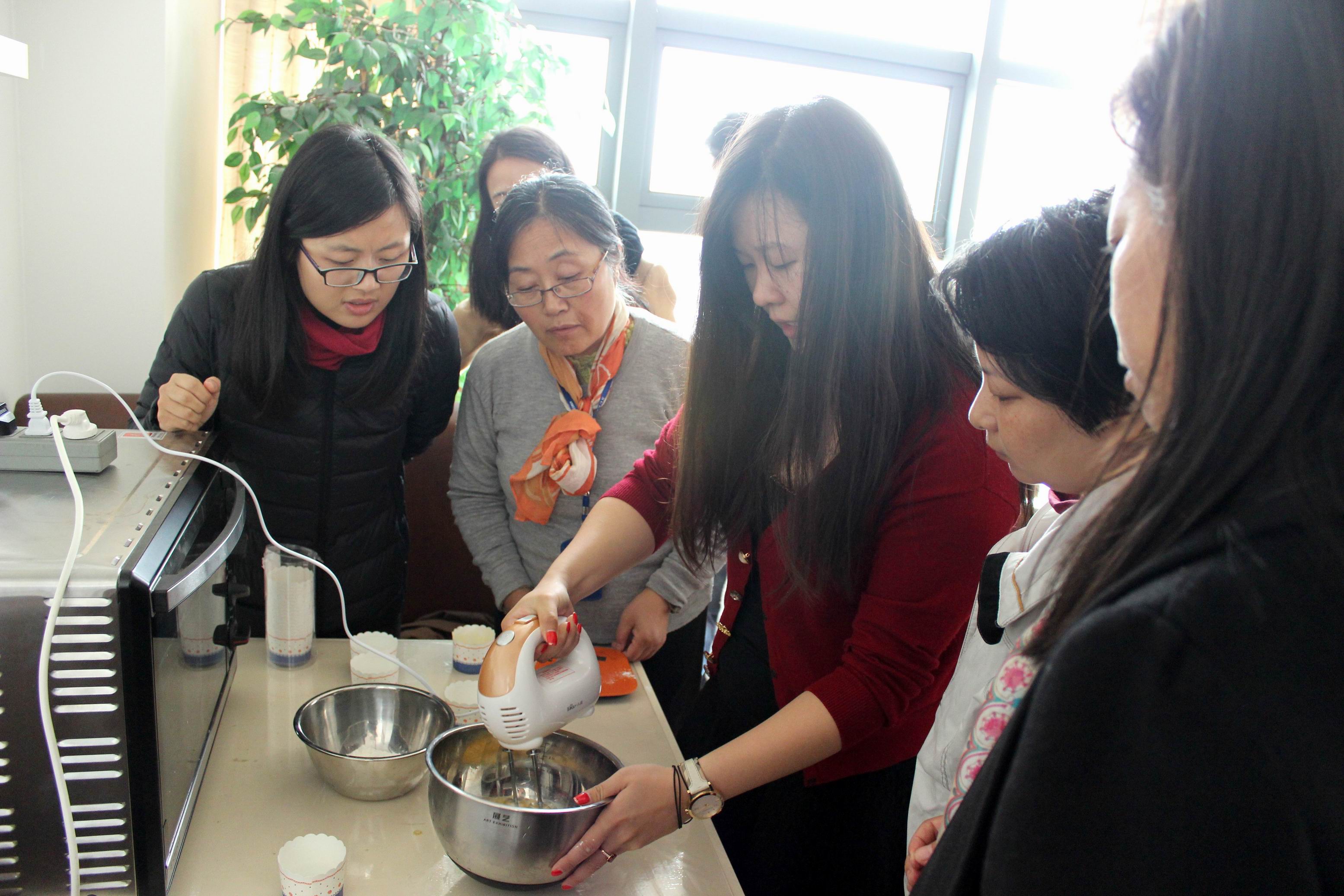 这次的主题是学做迷你蛋糕,虽然简单但是特别。平常我们所吃到的蛋糕都是从面包店买来的,现在人们都喜欢亲手制作,自己动手DIY的美食确实更美味。活动中,欢笑声伴随着浓浓的奶油香味从屋里传出来,女同胞们愉快地享受着制作蛋糕的每一个环节,欣赏着自己的成果。很多男同胞们循着香味来到活动室,争相品尝着其它老师做的蛋糕,赞不绝口。