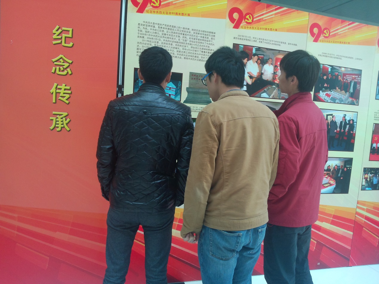 中共四大于1925年1月11日在上海召开,明确提出了无产阶级在民主革命的领导权问题,在党的历史和发展进程中具有很重要的意义。今天在图书馆二楼参观该图片展,看到党的历史与发展进程,让支部党员对中共四大召开的北京和意义有了更深刻的理解,并加深了支部党员的民族自豪感和爱党爱国的情怀,让支部党员们更加明白了大学生应该肩负起新时期下的使命与责任。