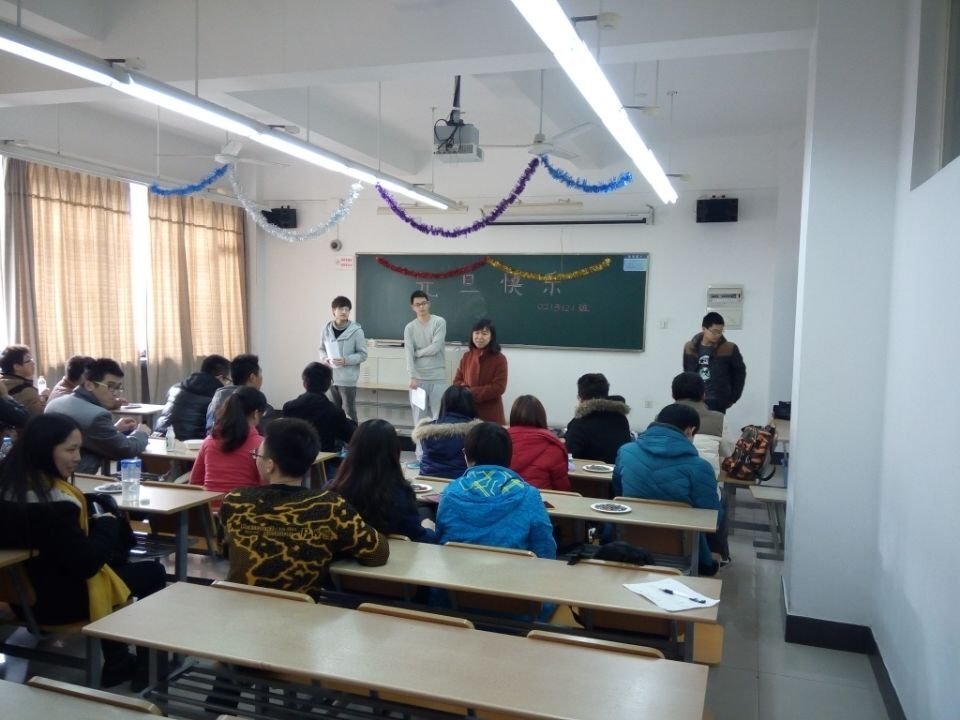 12月26日下午,0213121班在教学楼D311举行了热烈的元旦庆会。班主任单鸿涛及全班同学参加了庆会。