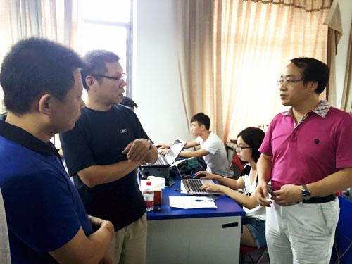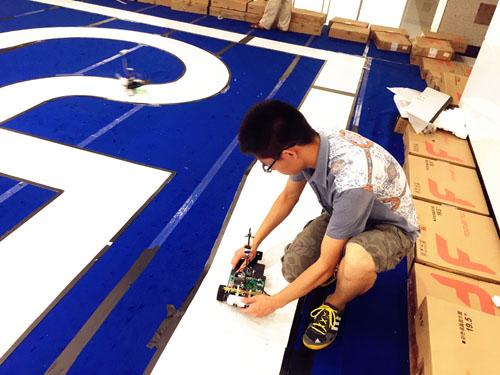 7月23日,正值学生即将赴江苏常熟参加第十届全国大学生“飞思卡尔”杯智能汽车竞赛之际,电子电气工程学院院长方志军、副院长曾国辉以及辅导员李迎、张方杰一行前往学院实训楼实验室慰问我院参赛学生和指导老师。