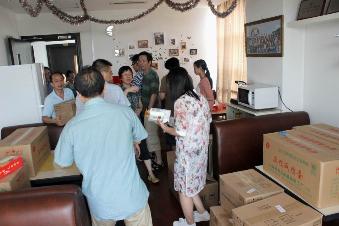 7月20日下午,学院工会开展“夏送清凉”活动。各工会小组长在学院工会主席施一萍老师的带领下,有条不紊地把购买的保障物资发到各位老师的手中,在这个酷暑难耐的日子给大家带来了一抹清凉。学院党委书记茅蕾、院长方志军来到发放现场,代表学院亲手把慰问品送到大家手上,希望大家能在夏日高温天气保重身体,好好工作。