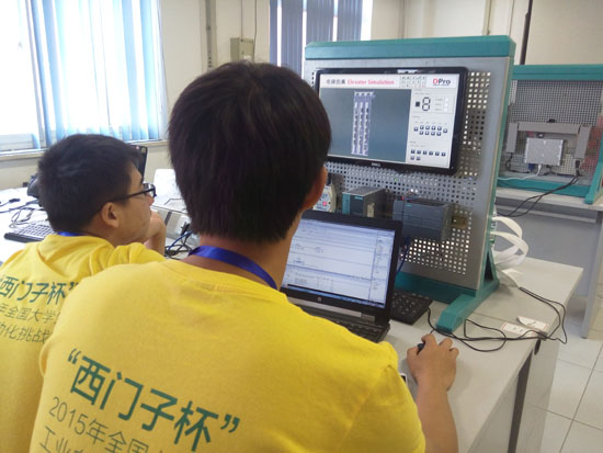 本次逻辑控制赛项主要是设计一套基于西门子PLC的电梯运行系统。SISUES团队从组队报名、PLC装配、研究算法、编程再到校内调试,前后历时半年。2015年7月,赛队成员们 在上海应用技术大学进行上机练习及比赛;7月23日,华东一分区赛落下帷幕,SISUES以“上海市大学生工业自动化挑战赛逻辑控制赛项特等奖”及“‘西门子杯’工业自动化挑战赛华东一分区逻辑控制赛项特等奖”的优异成绩顺利入围全国决赛。同时,由电子电气工程学院学生组成的“数字与激情”、“SUES”、“勇敢者”等赛队分获二等奖2项、三等奖1项。