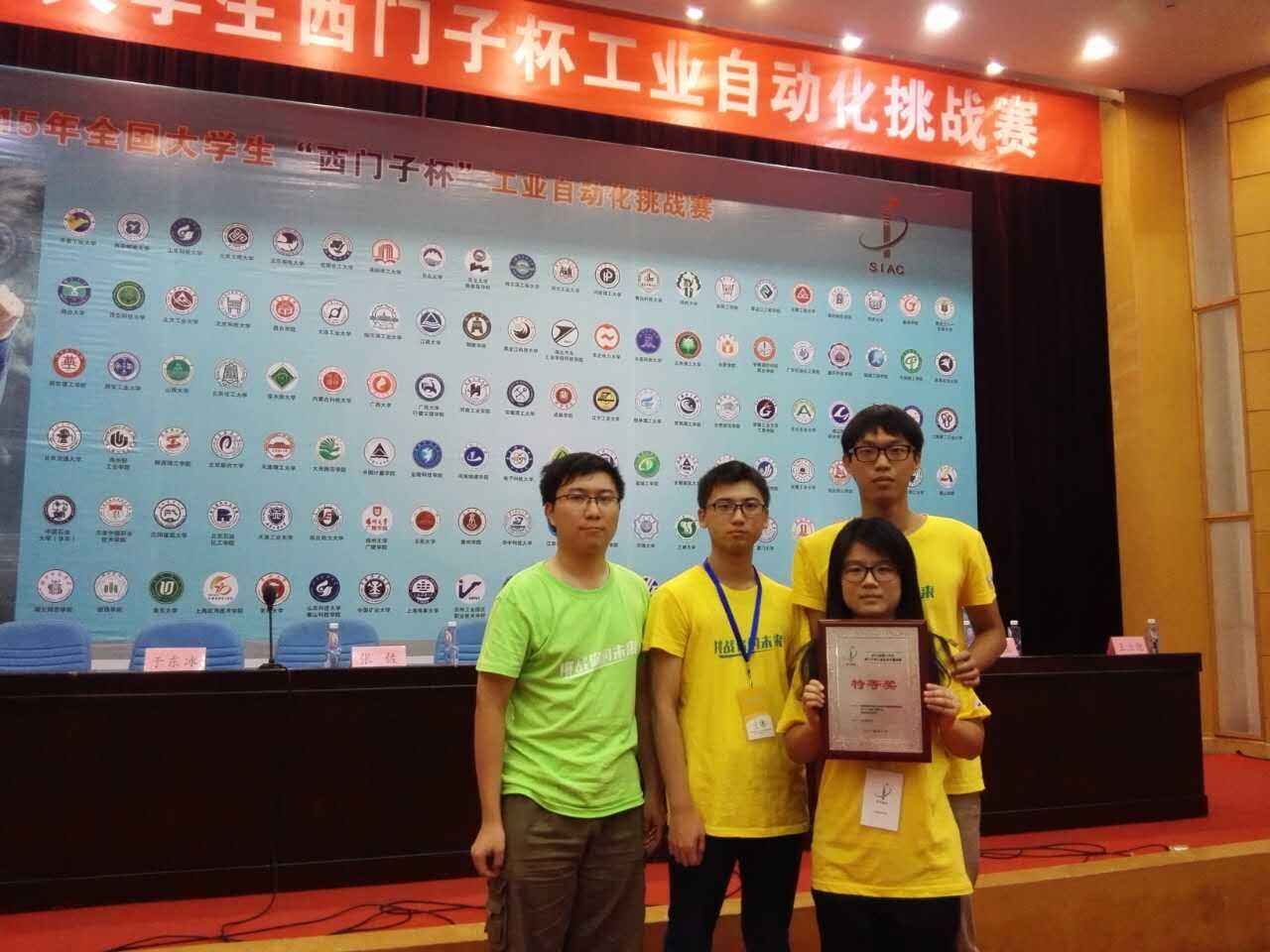 8月25日,历时三天的2015“西门子杯”全国大学生工业自动化挑战赛于在北京交通大学落下帷幕,我校电子电气工程学院三名学生组队的SISUES赛队经过三天紧张而激烈的比拼,在入围全国决赛的104支队伍中,以自动评分系统运行成绩第一的成绩,斩获逻辑控制组全国特等奖,刷新我校在该项赛事上的记录。本次赛事由教育部高等学校自动化类专业教学指导分委员会、西门子(中国)有限公司和中国系统仿真学会联合主办,北京交通大学承办。