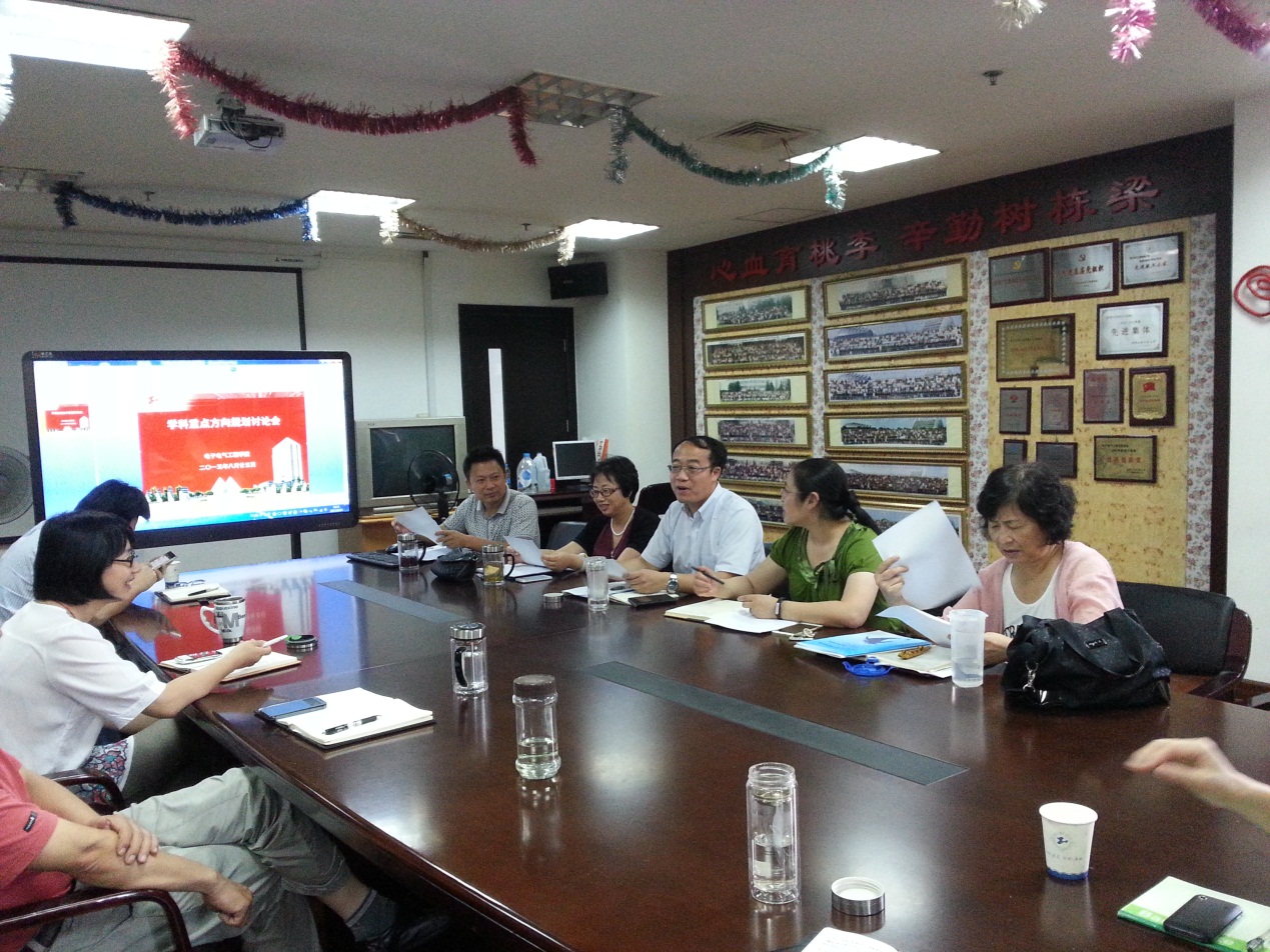8月25日上午,电子电气工程学院在行政楼912召开了关于学科重点发展方向的讨论会。学院党委书记茅蕾、院长方志军、副院长曾国辉、张莉萍、邓琛、各系室主任及学院学科负责人等参加了会议。会议由学院分管科研的副院长曾国辉主持。各位老师围绕2015-2017学科重点发展方向规划、十三五期间学院科研能力拓展以及新教师的培养等进行了深入探讨。