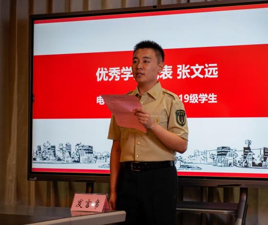 校友江海欣目前于中国科学院上海技术物理研究所攻读硕士,他以自己在电院“奋斗”的四年鼓舞新生们在大学内必须涵养骨气、夯实底气、坚守志气,做有胸怀家国,脚踏实地的新时代青年。
