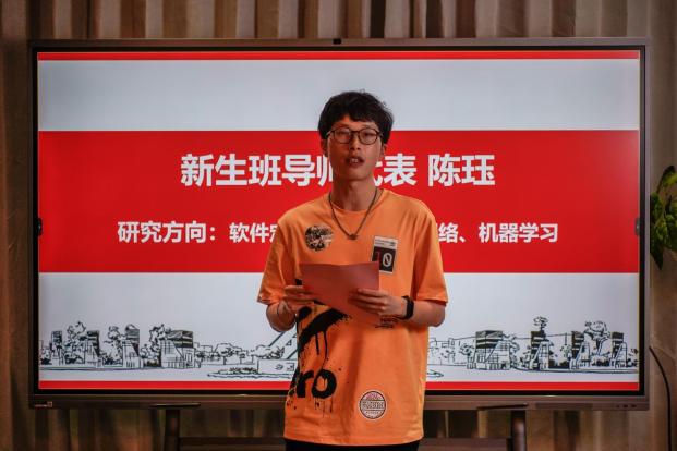 班导师代表陈珏老师鼓励同学们要勇敢适应大学生活,更要学会自学、学会交流点,掌握科学的学习方法,培养自主学习和独立思考问题、分析问题、解决问题的能力。