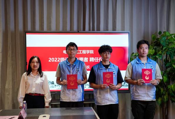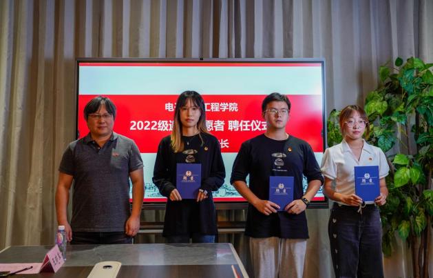 学院副院长王晓军、赵晓丽,分别为2022级导生和2022级迎新志愿者颁发聘书,对各位班导生的殷勤付出、对志愿者“小电君”们为新生的无私服务表示肯定。