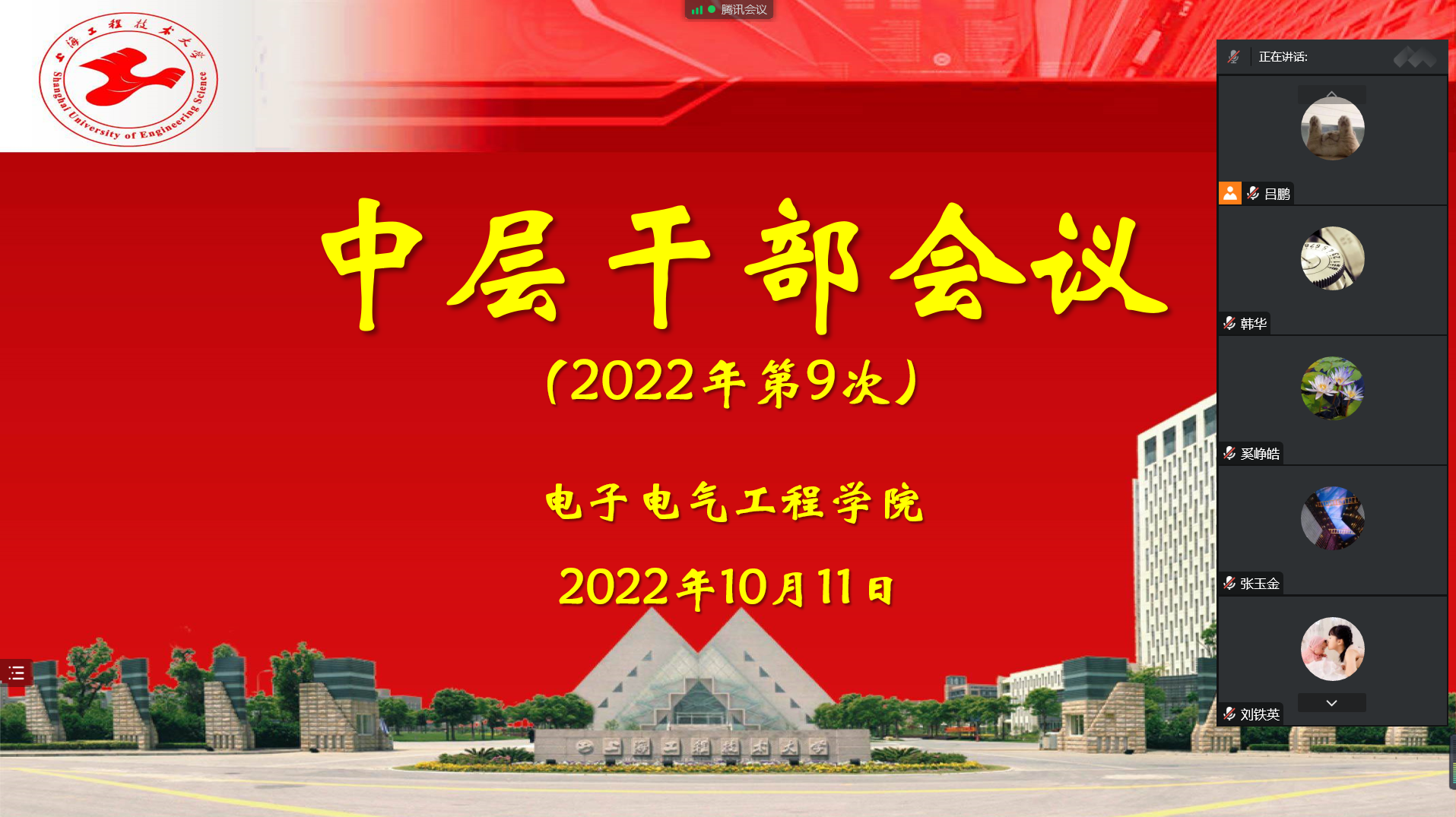 10月11日下午,学院党委通过线上形式召开学院中层干部会议。会议由学院党委书记范君晖主持,学院党委委员、党政领导、全体中层干部参加会议。