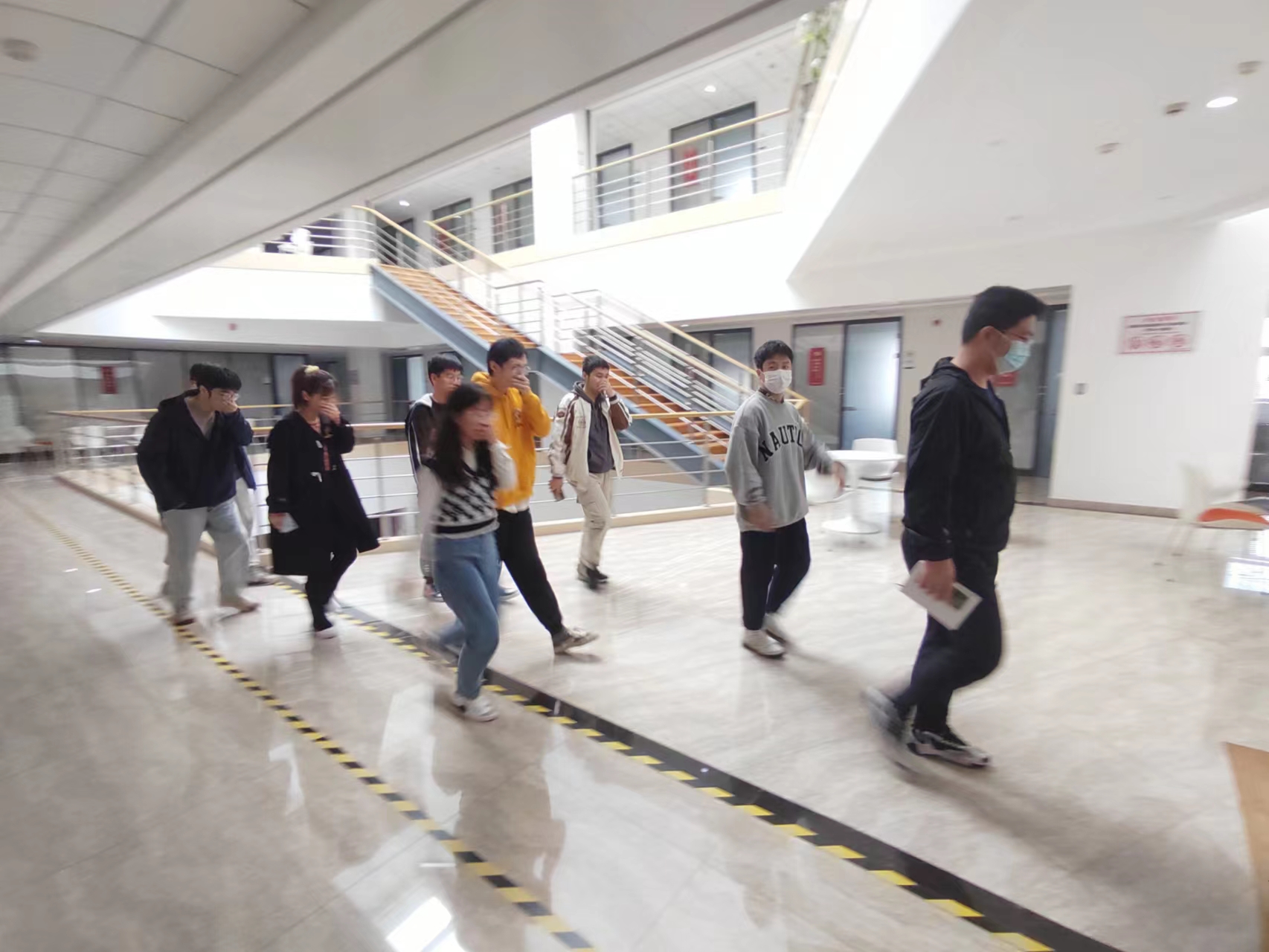 刘慧老师首先对全体参加演练的同学开展实验室安全教育。14:30分,在安全员王晓丽老师的指挥下,同学生们按照逃生演练命令,从最近的消防通道疏散逃生并在指定地点有序集合。