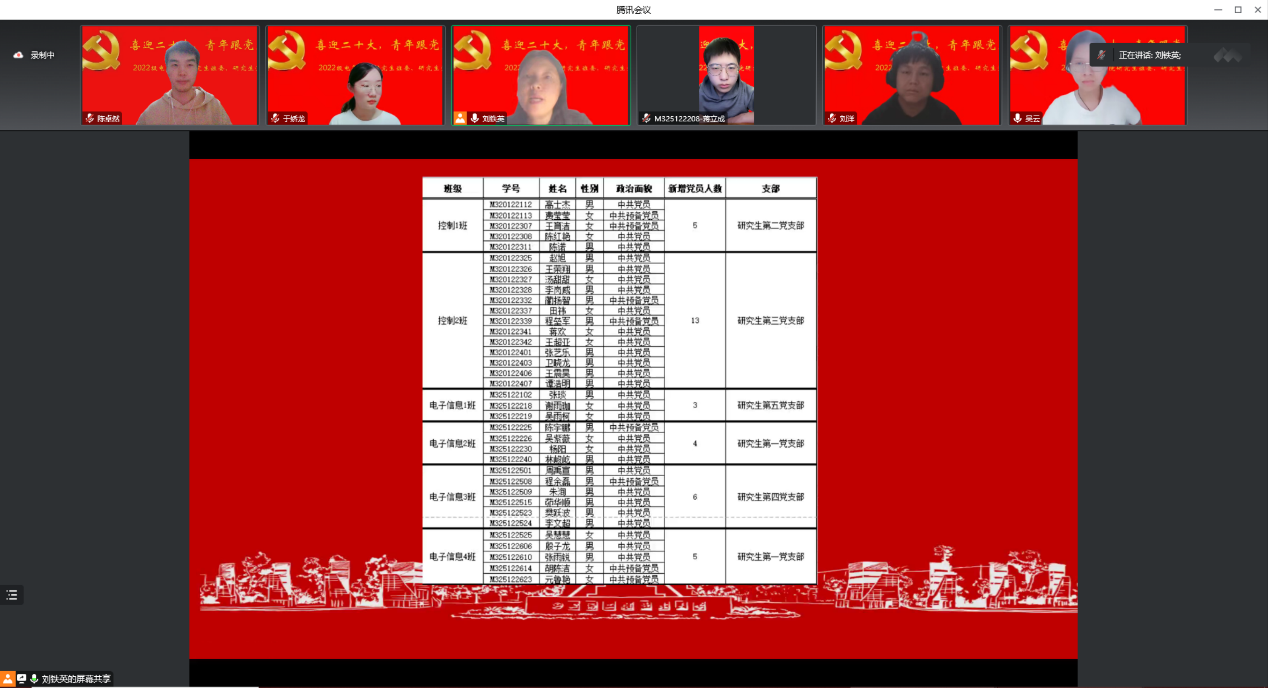 刘铁英老师首先简单介绍了学院各研究生党支部的情况,同学们加深了对党组织的了解和认识。随后,刘老师指导同学们如何正确书写入党申请书,并重点强调撰写写入党申请书前,对党的性质、指导思想以及原则的了解,应认真阅读修改后的新党章。作为一名积极要求进步的青年学子,需要学习好党的二十大精神和习近平新时代中国特色社会主义思想,更加深入的认识和了解党的性质、宗旨、任务、党员的权利和义务等,逐步认识和了解中国共产党是什么,要干什么的,从而进一步厚植爱党、爱国、爱社会主义的情感,让红色基因、革命薪火代代传承。作为新时代的青年学子,撰写入党申请书是件严肃的事情,一定要坚定共产主义理想和信念,从感情上热爱党,从行动上追随党,以成长为一名合格的共产党员为目标、为光荣,用伟大的建党精神锻造堪当民族复兴重任的时代新人。