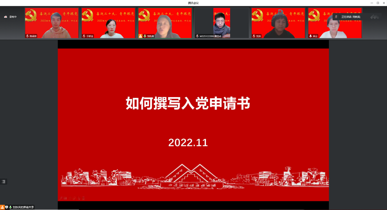 党的二十大召开以来,学院研究生新生入党积极性有很大提高,不少青年学子向党支部表达入党意愿。为进一步推进学院研究生党员队伍建设工作做好铺垫、打牢基础,召唤青年学子坚定不移听党话、感党恩、跟党走。应2022级研究生新生需求,学院2022级研究生辅导员,研究生第二党支部书记刘铁英老师于近日开展了入党启蒙培训,就如何撰写入党申请书进行介绍。