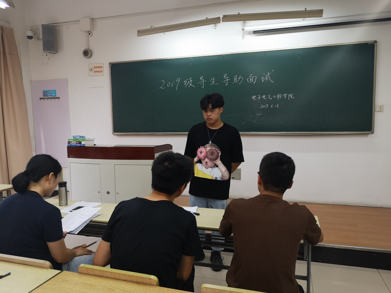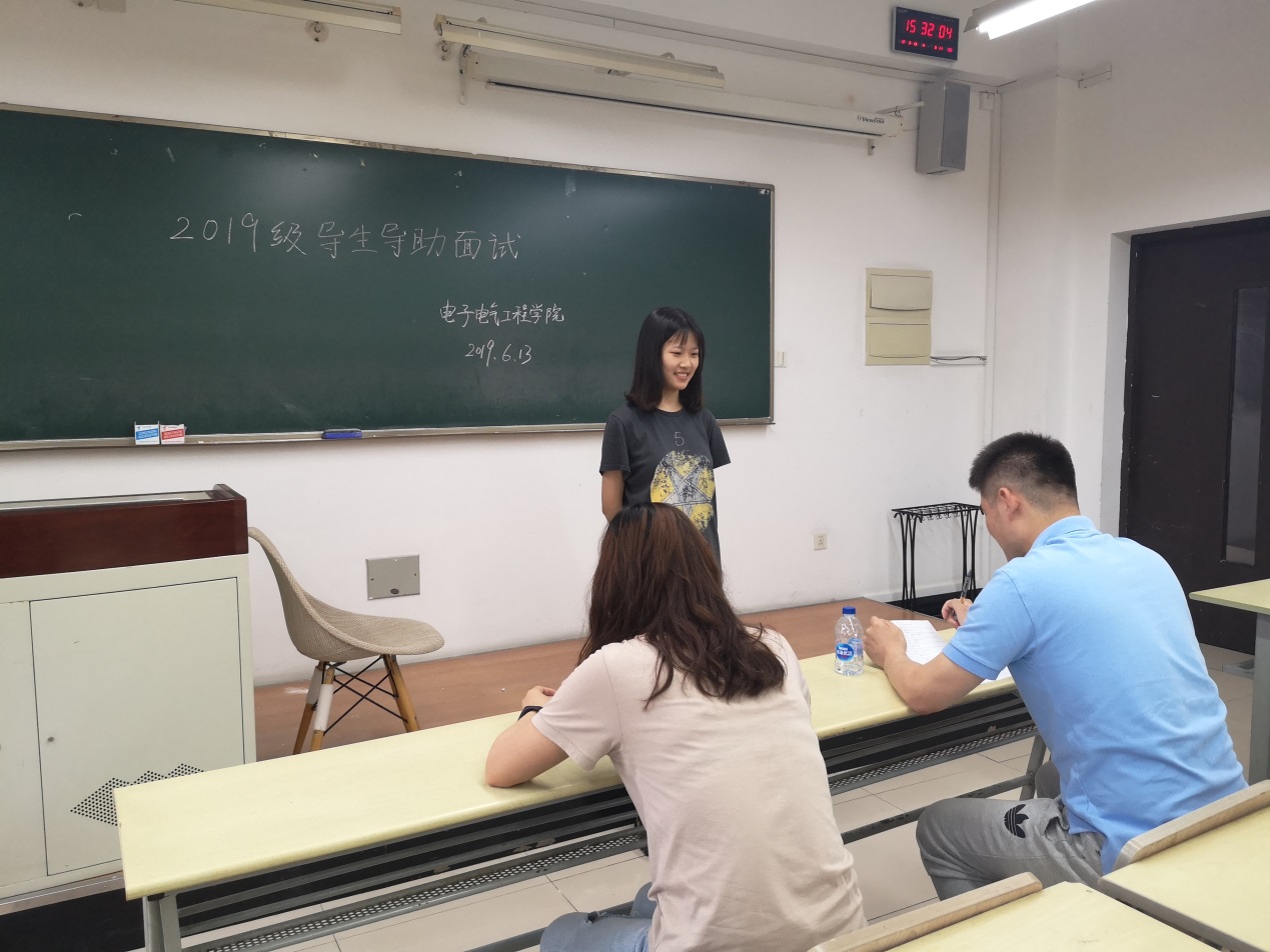 为迎接2019级新生的到来,引导2019级新生更好地适应大学校园生活,协助辅导员老师更好地做好新生思想教育工作和管理工作,2019年6月13日下午14:30至17:00,电子电气工程学院2019级导生、导助面试在教学楼B102和B106教室进行。此次导生、导助面试由学院三名辅导员和两名2019级社区辅导员共同担任面试官。