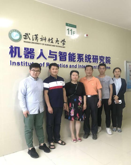 在伍教授和邓高旭校友的带领下,校友巡访团老师们还参观了武汉科技大学的机器人与智能系统研究院,了解了伍教授团队的最新科研成果,三维物体的快速建模及高精度视觉测量方法、特征提取及基于机器学习的目标识别、仿生机器人结构设计及控制、群智能机器人编队控制等。