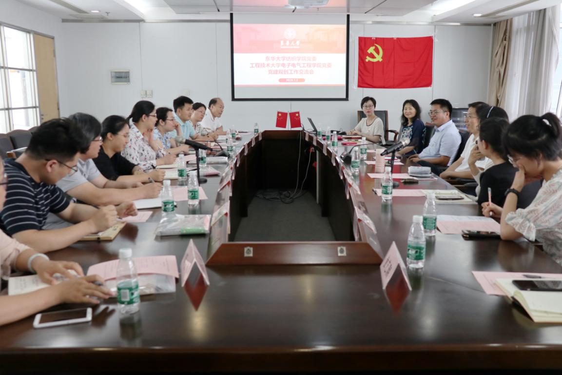 双方老师还就支部组织建设、党员发展与培育、教工党员作用发挥、党建工作和业务工作的深入融合等重要问题进行了热烈讨论和深入交流。东华大学纺织学院党委书记王新厚认为,基层党建工作要按照新时代党的建设总要求,突出政治功能,对标“五个到位”、“七个有力”,围绕中心抓党建、抓好党建促发展,通过深度融合介入教学科研,打造一流学科背景下的双融合、双促进党建模式。我院党委书记段海霞介绍了学院党建引领一流学院发展的基本情况和做法。
