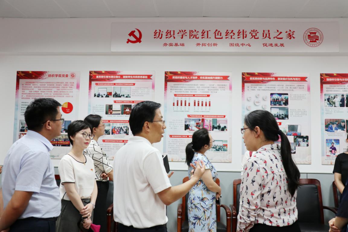 会后,大家还参观了纺织学院“红色经纬党员之家”、“高技术纺织品系党支部工作室”等。