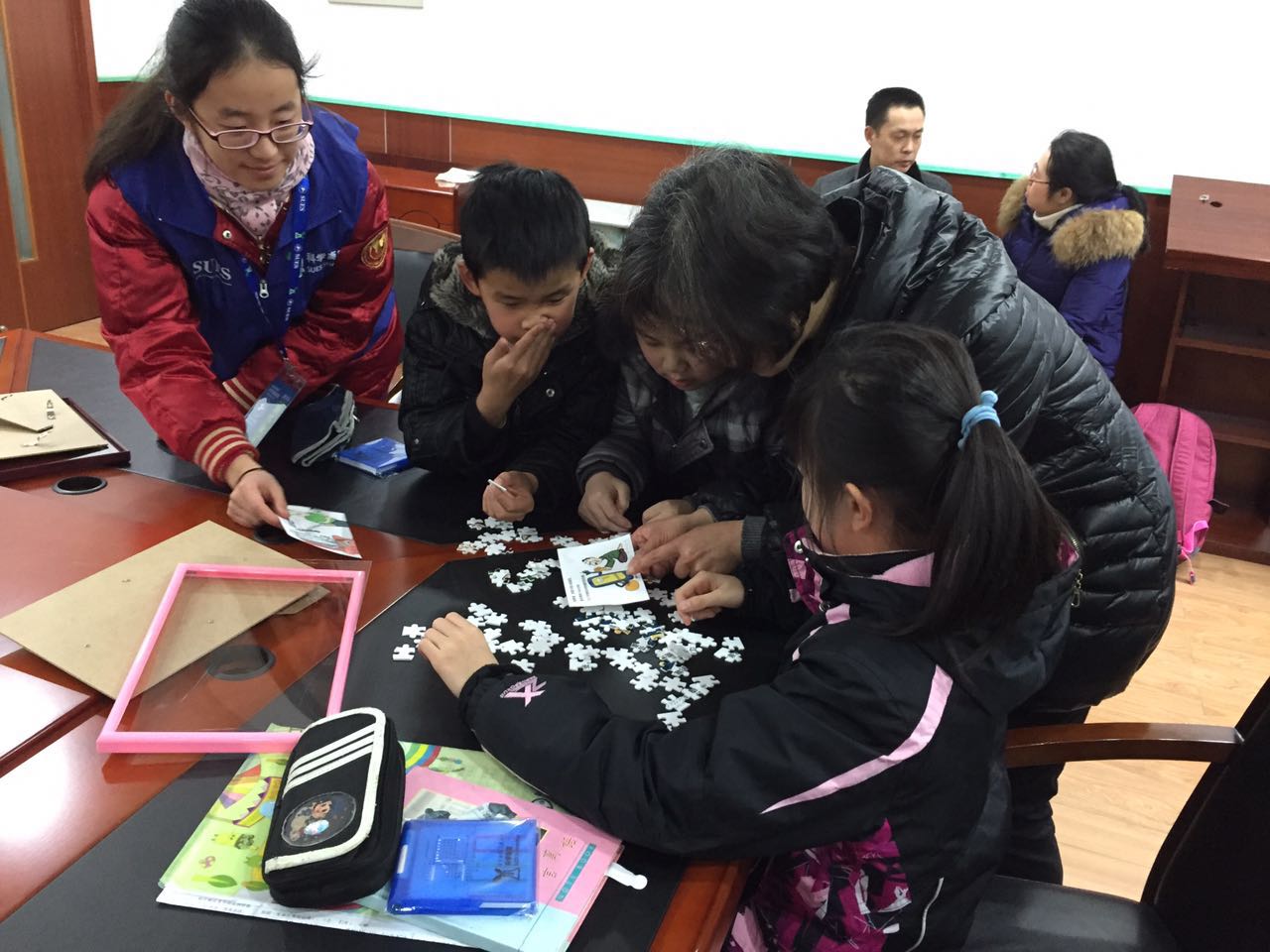 与此同时,同学们还为淮海中路街道成立的“寒假爱心学校”的小朋友们带来了网络安全知识和科普拼图,小朋友们踊跃提问,气氛融洽。