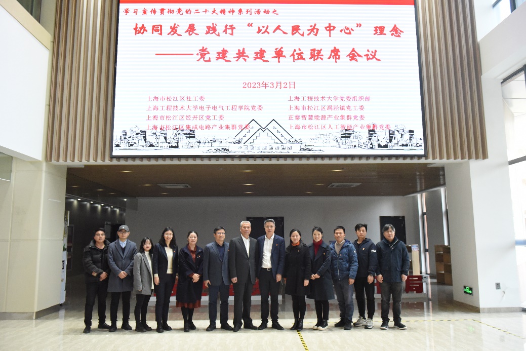 为深入学习宣传贯彻党的二十大精神,进一步对接国家战略,服务地方经济发展,促进与G60科创走廊密切合作,同时积极落实习近平总书记关于“学雷锋”精神的重要指示精神,服务行业企业,服务学生,为学院学生就业搭建平台。3月2日下午,学院党委与松江区社工委在现代交通工程中心7-1003室党群E家联合召开以“协同发展 践行‘以人民为中心’理念”为主题的党建共建单位联席会议。出席本次会议的单位有松江区社工委、上海工程技术大学党委组织部、上海工程技术大学电子电气工程学院党委、松江区洞泾镇党委、松江区经开区党工委、正泰智慧能源产业集群党委、松江区集成电路产业集群党委、松江区人工智能产业集群党委,活动由学院党委书记范君晖主持。