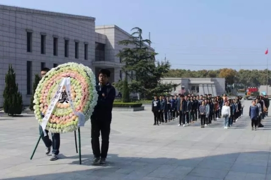 缅怀活动开始,在庄严的国歌声中,党员代表向陵园里的烈士纪念碑敬献了花圈,同时所有师生在纪念碑前默哀三分钟,表达了学院师生对先烈们深深的悼念和崇高的敬意。
