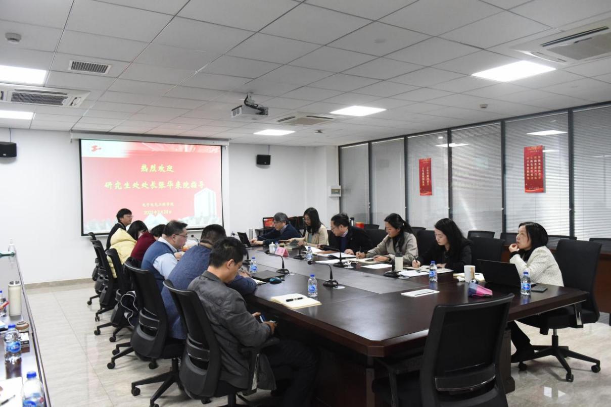 张华教授指出,近年来,学校的研究生教育工作发展迅速,招生规模大幅增长,下一步学校研究生工作的重点主要是学位点层次的提升,以适应研究生教育高质量发展。他强调学院要继续做好优化教育资源建设等工作,特别是要加大研究生课程建设,提高教育资源的有效利用率,要进一步扎实推进研究生培养质量保障体系,在各个环节严格把关,确保研究生培养质量。