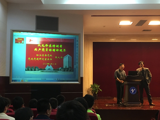 4月21日晚,学院邀请松江区委党校党史党建研究室主任、张大伟讲师来到松江校区,在图书馆第二报告厅为学院预备党员培训班学员作专题报告。电气、化工、管理、汽车、航空、社科、轨道等学员的预备党员近200人参加了报告。