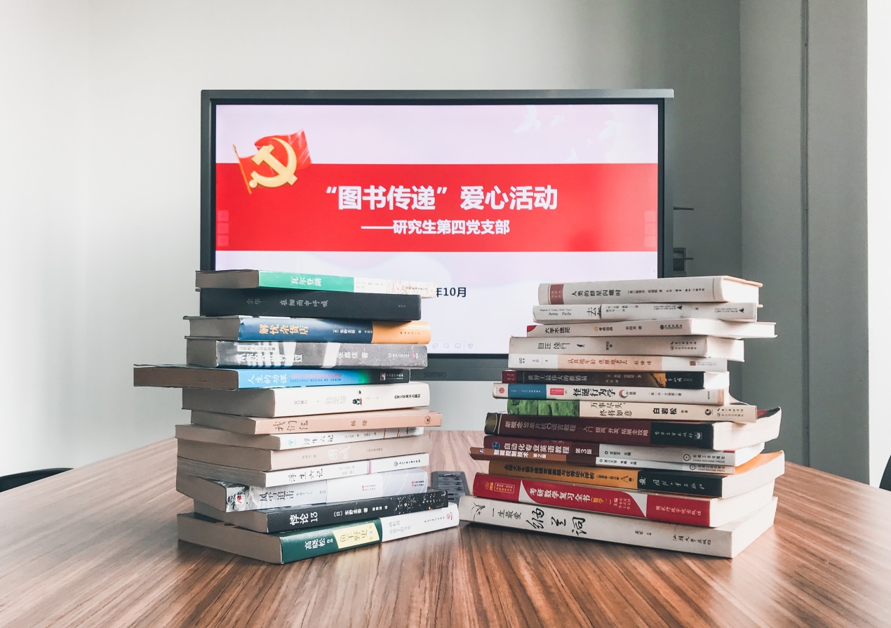 书籍是人类进步的阶梯,是获取知识的源泉。一本适时的好书,可以让一个人瞬间成长。图书传递,是一场神秘而又深邃的旅行。10月22日上午,研究生第四党支部在图文信息中心共享空间开展了一场“图书传递”的爱心活动。本次活动由党支部书记李迎主持,研究生第四党支部全体党员出席参加。