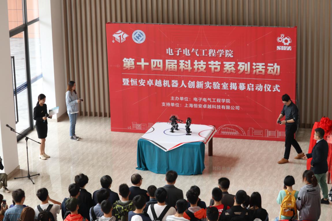 上海恒安卓越科技有限公司是一家专注服务于K12以上高校的科技教育公司。在机器人高等教育领域里已深耕十五年,成熟和专业受到了各大专院校的一致认可。恒安卓越机器人创新实验室的揭幕旨在融合我院人工智能实验班的特色,拓展学生素质,挖掘学生潜力,延展学生想象空间,为学生提供宽松的第二课堂氛围与健全的双创活动支撑。我院科技节活动在推进学生双创能力培养,强化学生工程实践能力,深化三全育人内涵发挥着积极的作用。(张彬)