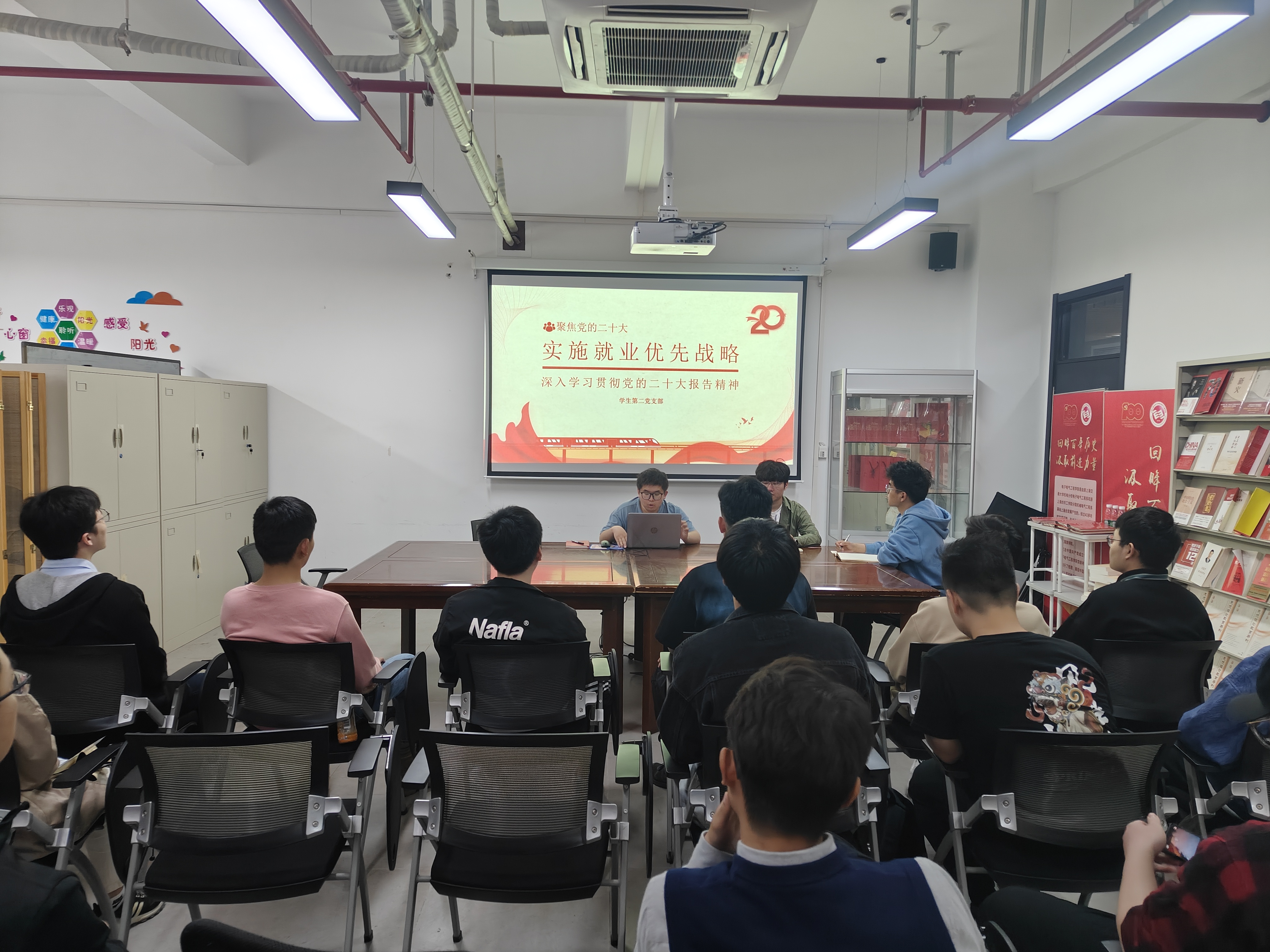 为深入开展学习贯彻习近平新时代中国特色社会主义思想主题教育,贯彻落实党的二十大精神以及上级对高校毕业生就业创业工作的决策部署,扎实推进 2023 届毕业生就业工作,4月19日学生第二党支部召开就业经验分享会,进一步发挥党员先锋模范作用、展现党员就业引领成效。