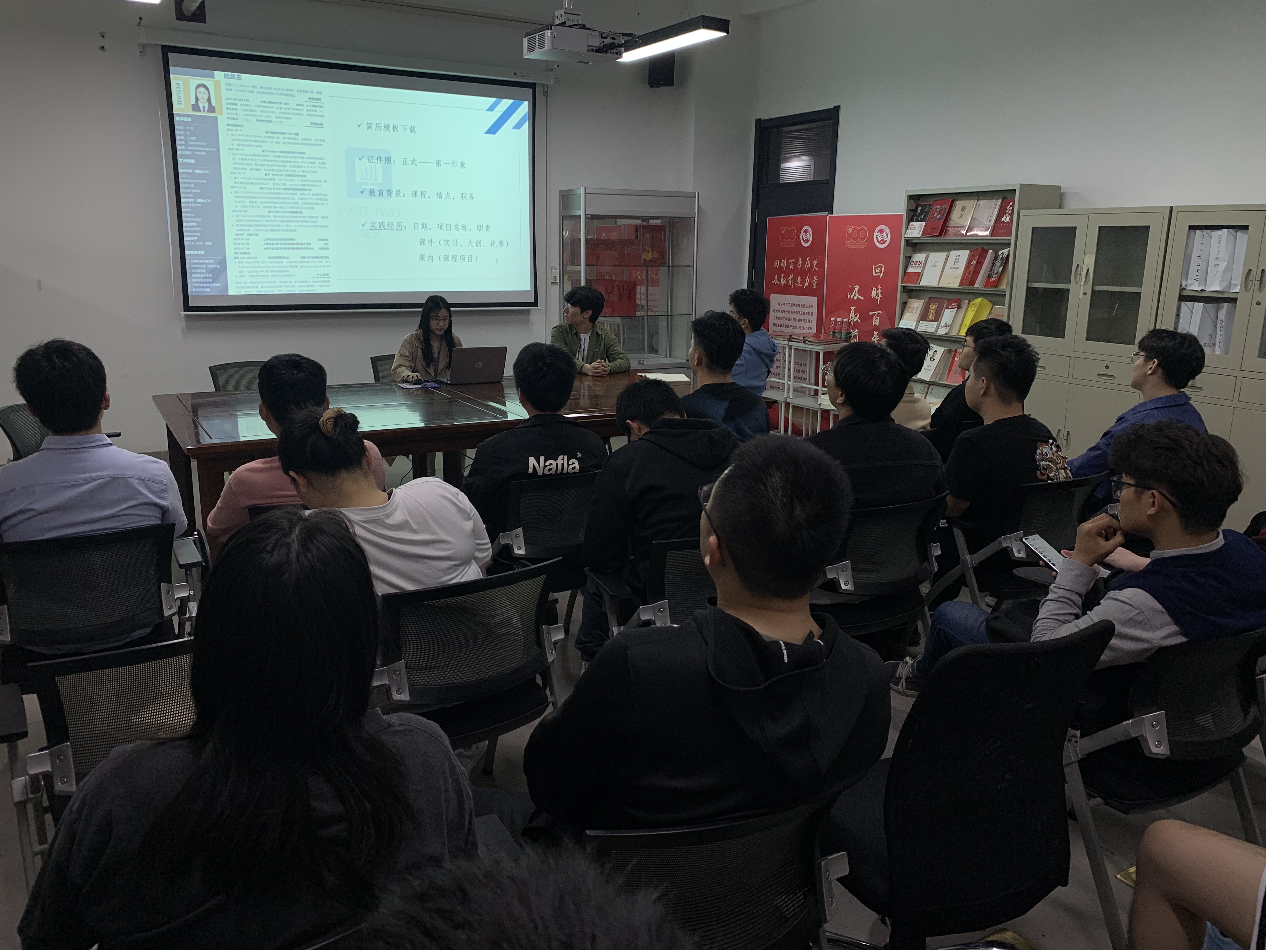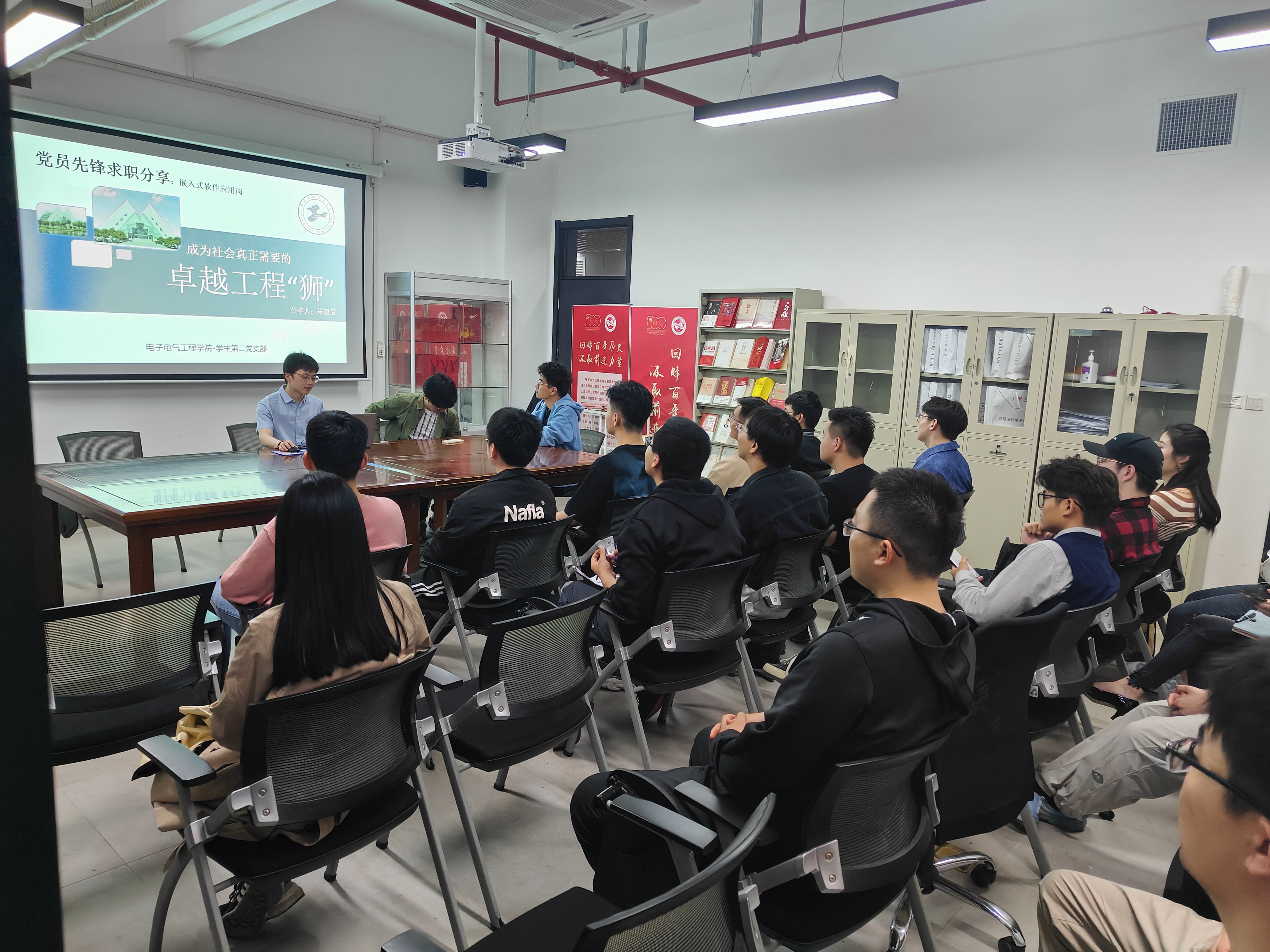 随后,签约中国联通、中国石化、中国船舶、上海创景信息科技、日立安斯泰莫汽车电子等公司的支部党员结合自身参加招聘经验,分享了日常实习及求职过程当中的好经验、好做法、注意点等,与学弟学妹们在职场规划和未来发展过程中遇到的问题进行了交流分享。