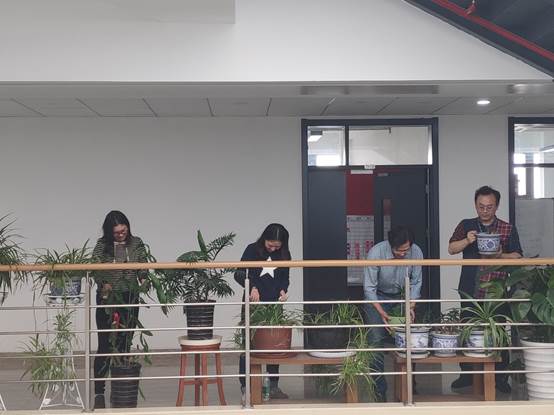 日,学院办公室党支部开展好事实事活动,支部党员一起对学院公共区域的绿色植物进行了养护,对其修剪、填土,为学院公共环境增添绿色。